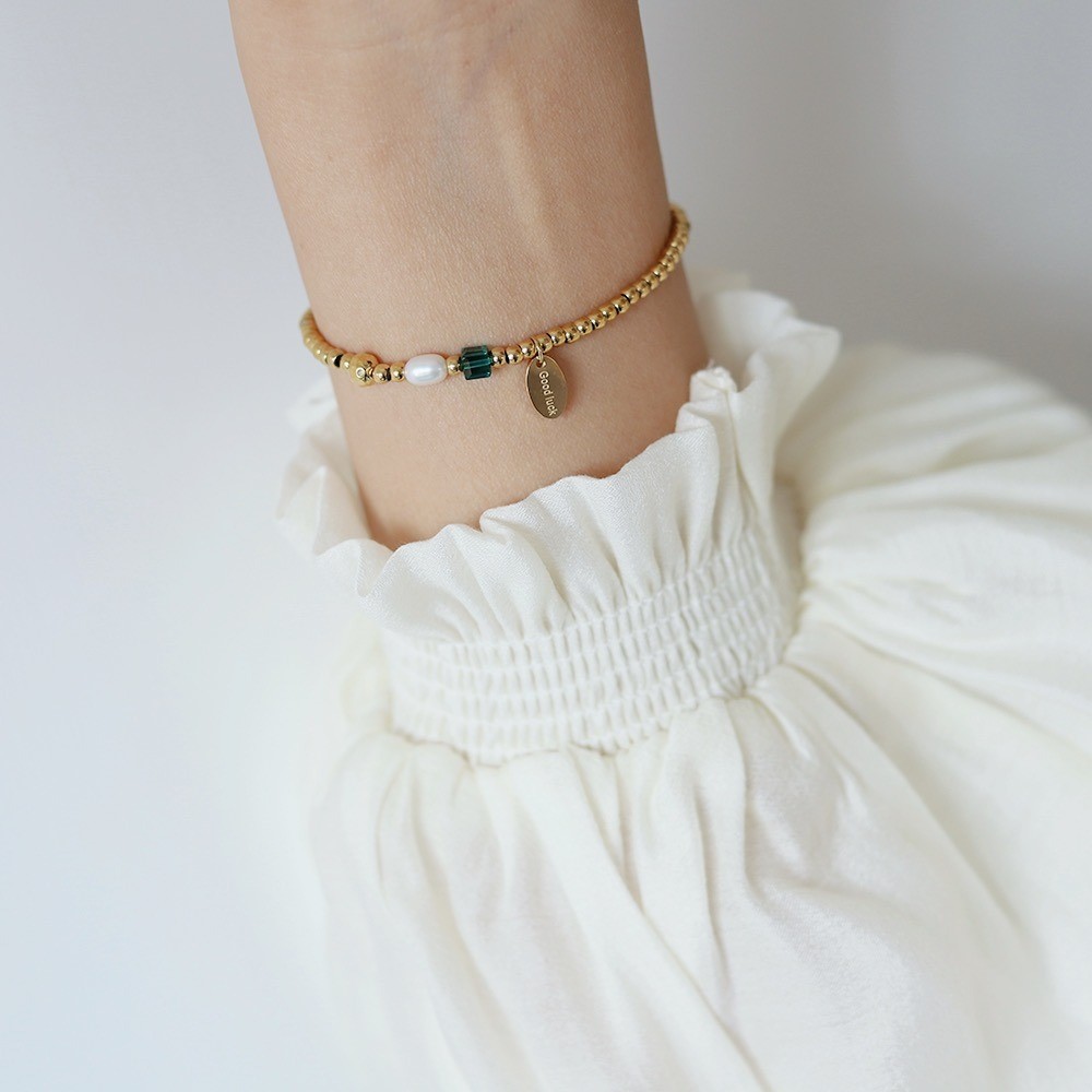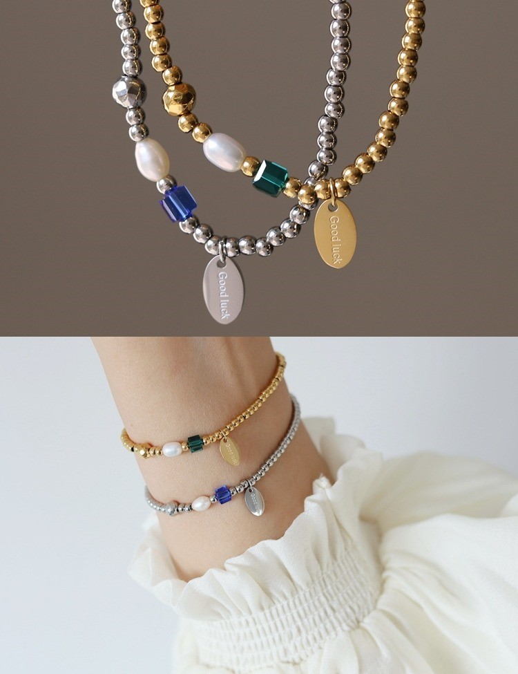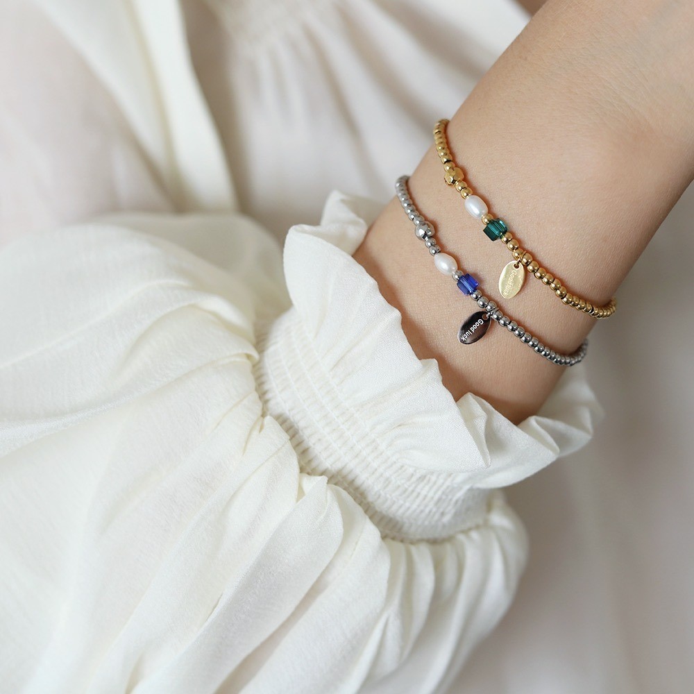 品名:TB037 티타늄볼팔찌 ◎※☞颜色:골드, 실버 ◎※☞尺寸:비즈 3MM, 신축성, 16CM 이내 착용 가능 ◎※☞材质:티타늄 100%,담수진주 100% 翻译