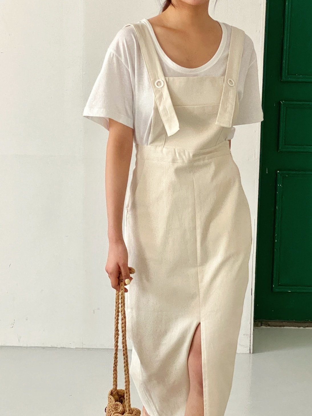 品名:时尚百搭前开叉背心背带连衣裙 ◎※☞颜色:블랙, 아이보리, 핑크 ◎※☞尺寸:FREE ◎※☞材质:弹力 4%,纯棉 96% 翻译