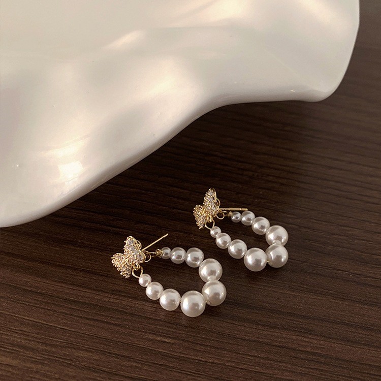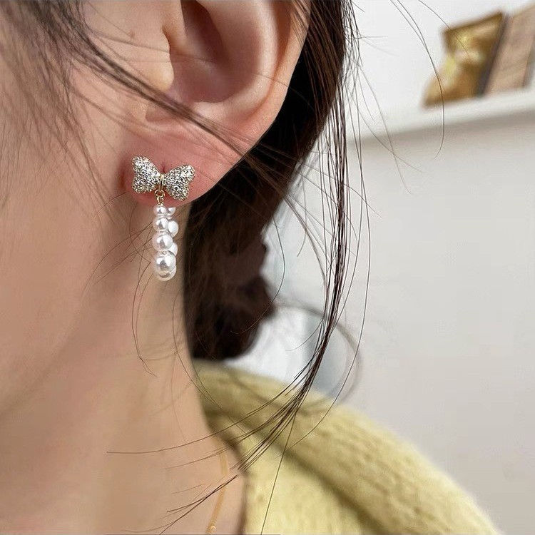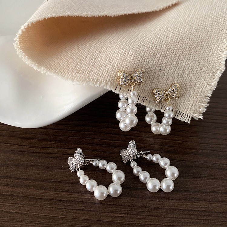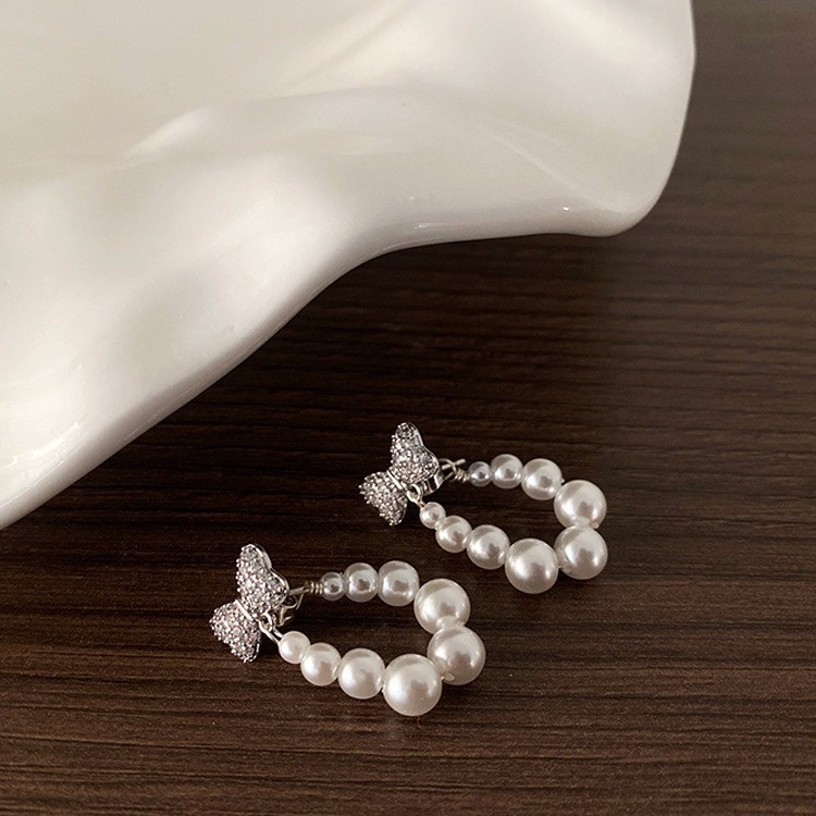 品名:E2401 리본진주귀걸이 ◎※☞颜色:골드, 실버 ◎※☞尺寸:F ◎※☞材质:镀金 100% 翻译