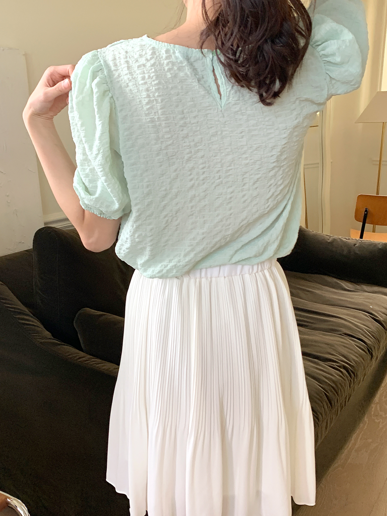 品名:简约甜美圆领短袖衬衫上衣 ◎※☞颜色:민트, 베이지, 핑크 ◎※☞尺寸:FREE ◎※☞材质:聚酯 100% 翻译