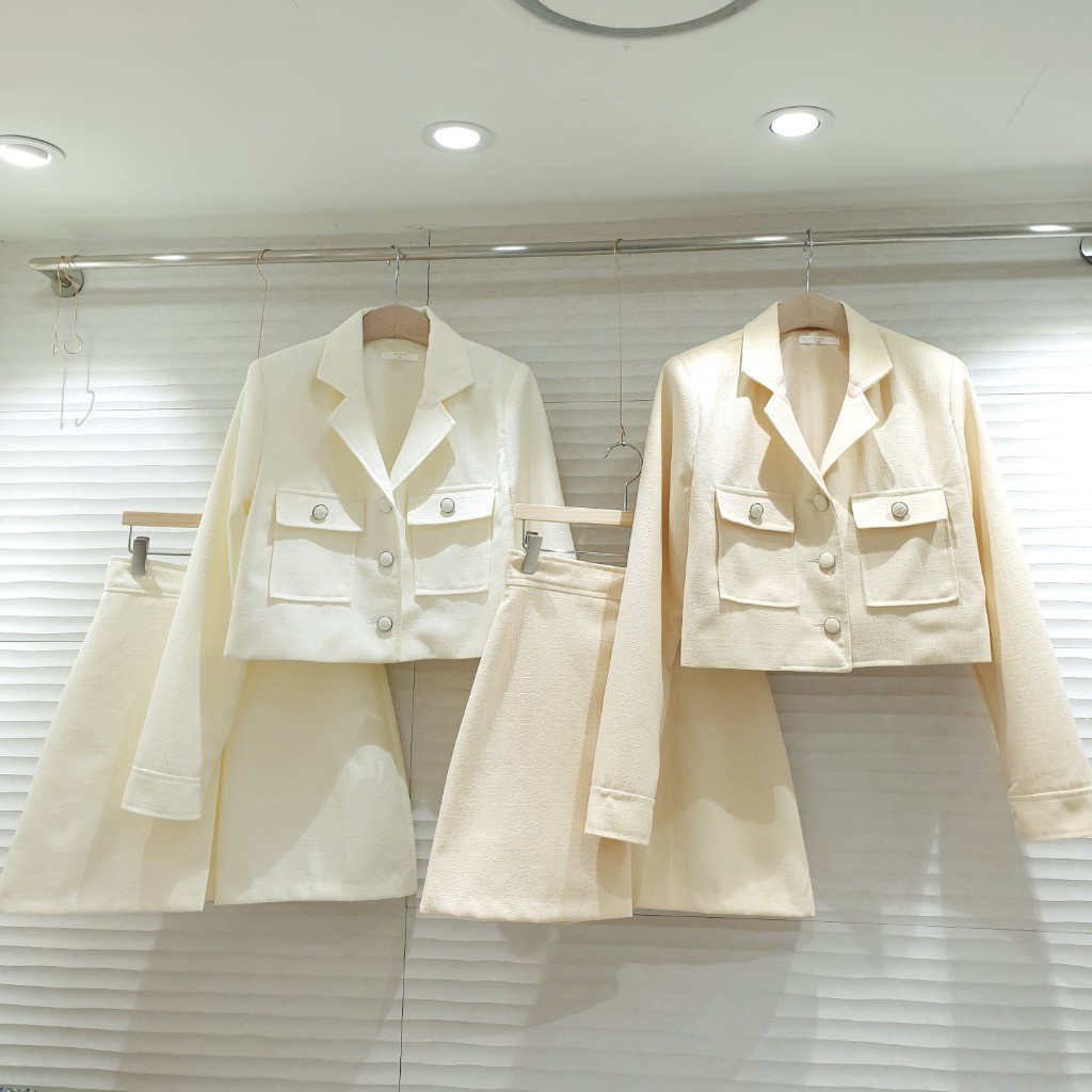 品名:(봄신상) 멜로디세트(set) [투피스 자켓 스커트 상하 포켓 카라] ◎※☞颜色:아이보리, 옐로우 ◎※☞尺寸:M, S ◎※☞材质:聚酯 100% ◎※☞注意事项:只能干洗,只能手洗,不能手洗,机洗,不能使用漂白剂,不能烘干,不能熨烫,不能曲折