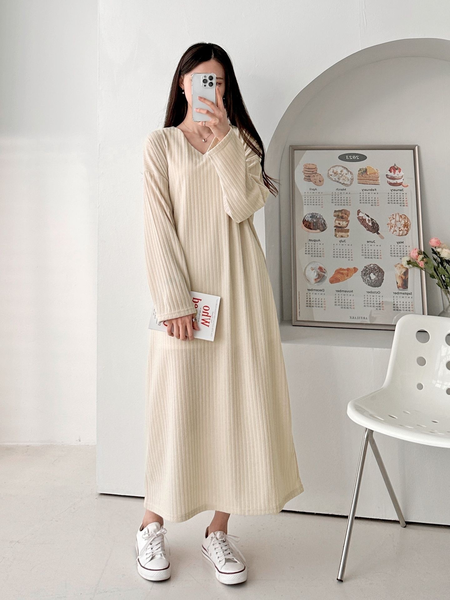 品名:브이넥 골지 원피스 ◎※☞颜色:LIGHTBEIGE, 그레이, 블랙 ◎※☞尺寸:FREE ◎※☞材质:聚酯 95%,span 5% ◎※☞注意事项:只能干洗,只能手洗,不能手洗,机洗,不能使用漂白剂,不能烘干,不能熨烫,不能曲折