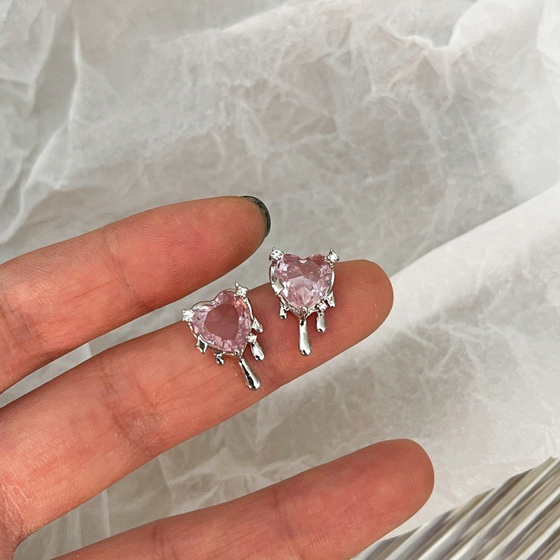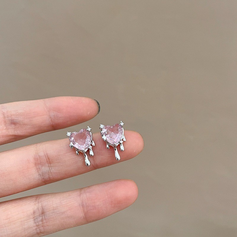品名:E2526 핑크하트눈물귀걸이 ◎※☞颜色:실버 ◎※☞尺寸:FREE ◎※☞材质:镀金 100% 翻译