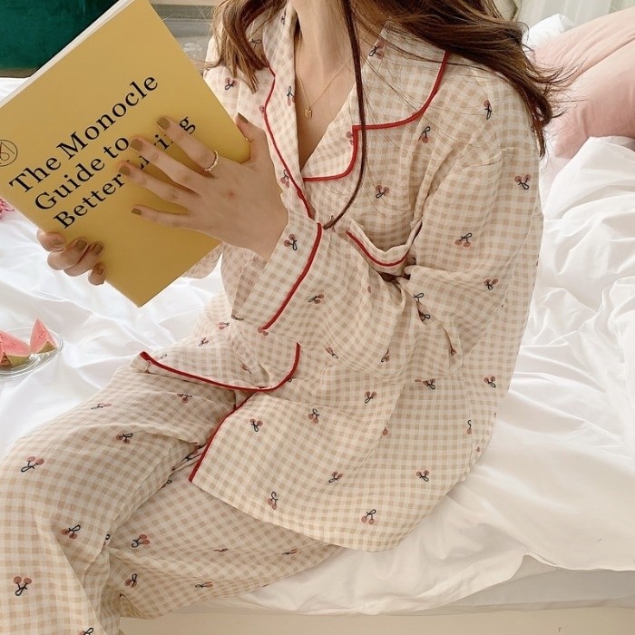 品名:봄신상 큐티체리 1번 홈웨어 잠옷 파자마 세트 ◎※☞颜色:원컬러 ◎※☞尺寸:FREE ◎※☞材质:纯棉 50%,聚酯 50% 翻译