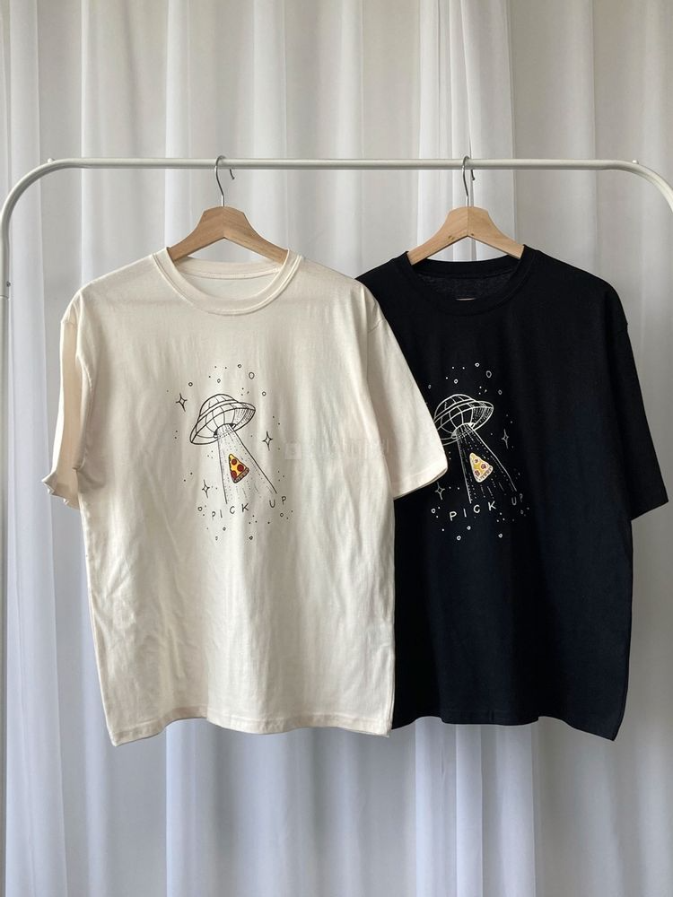 品名:신상 피자티셔츠 레터링 반팔맨투맨 루 ◎※☞颜色:블랙, 아이보리 ◎※☞尺寸:FREE ◎※☞材质:상세참조 100% 翻译