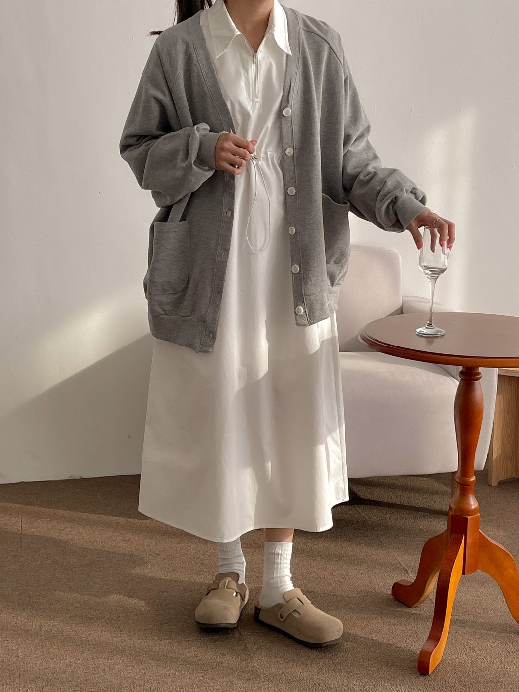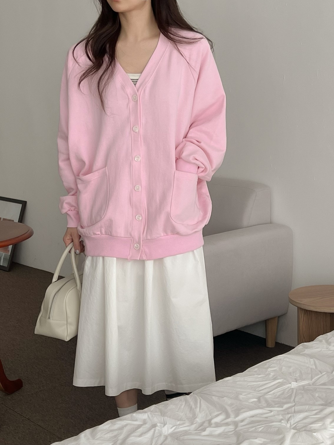 品名:나그랑CD #가디건 #오버핏 #간절기 ◎※☞颜色:그레이, 네이비, 아이보리, 핑크 ◎※☞尺寸:FREE ◎※☞材质:纯棉 100% 翻译