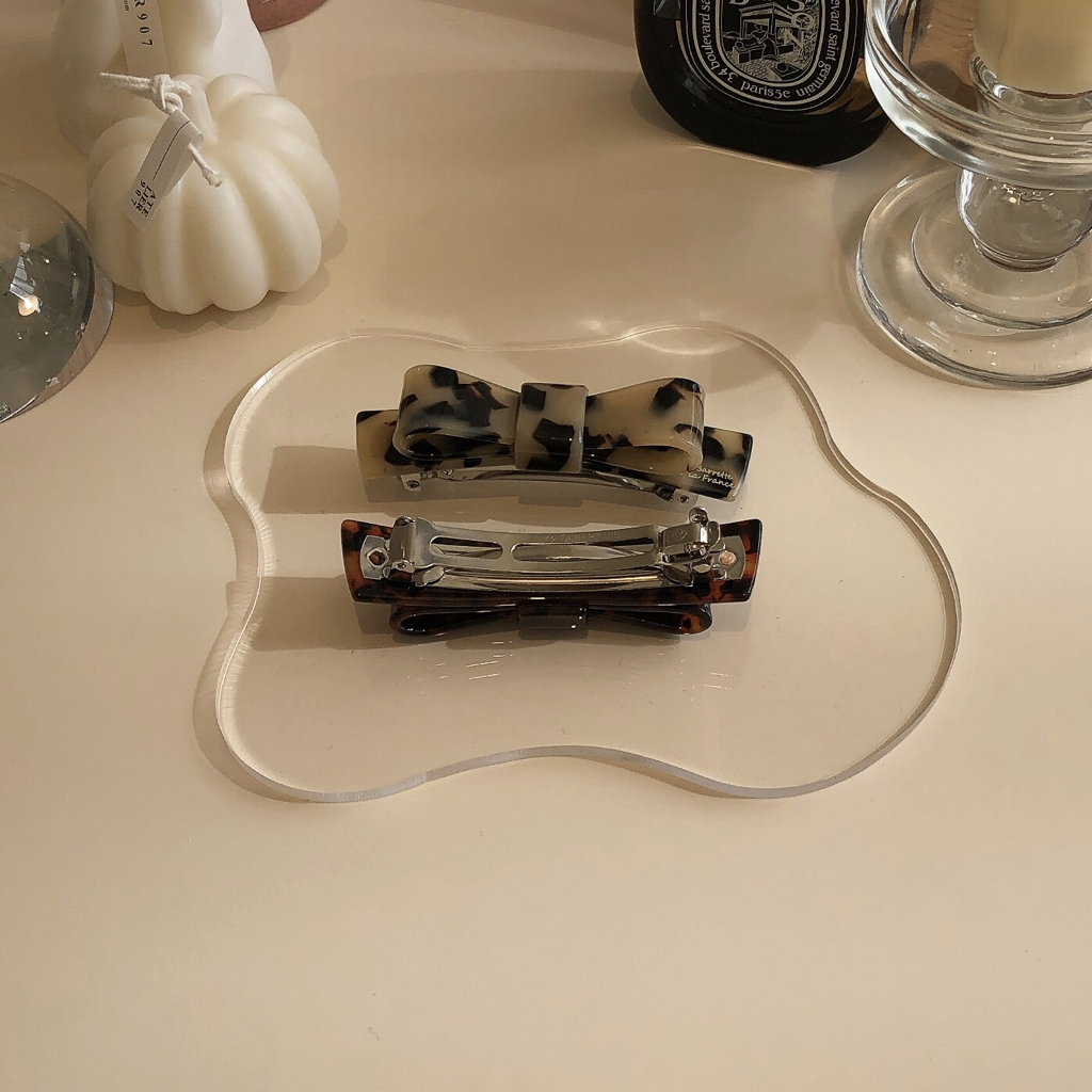 品名:HP1057(리본핀 반묶음핀 셀룰로오즈 호피핀 클립핀 헤어핀) ◎※☞颜色:베이지, 브라운 ◎※☞尺寸:FREE ◎※☞材质:셀룰로오즈 100% 翻译