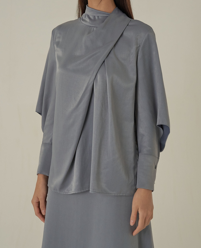 品名:23SS) 카울 블라우스 ◎※☞颜色:블루, 아이보리 ◎※☞尺寸:FREE ◎※☞材质:人造纤维 70%,聚酯 30% ◎※☞注意事项:只能干洗,只能手洗,不能手洗,机洗,不能使用漂白剂,不能烘干,不能熨烫,不能曲折