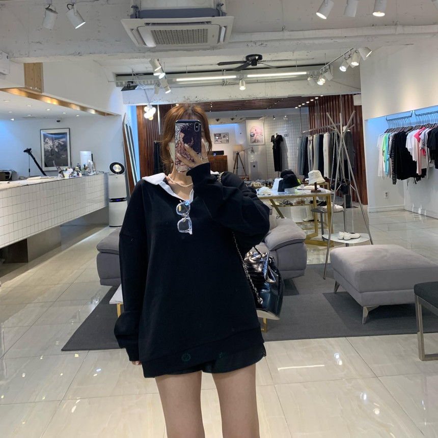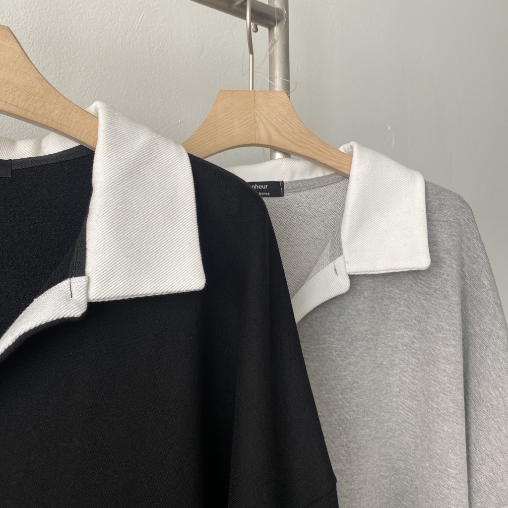 品名:时尚撞色翻领纯棉长袖卫衣 ◎※☞颜色:그레이, 블랙 ◎※☞尺寸:FREE ◎※☞材质:纯棉 100% 翻译