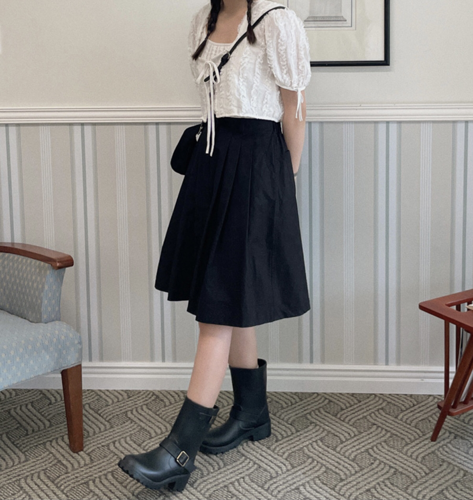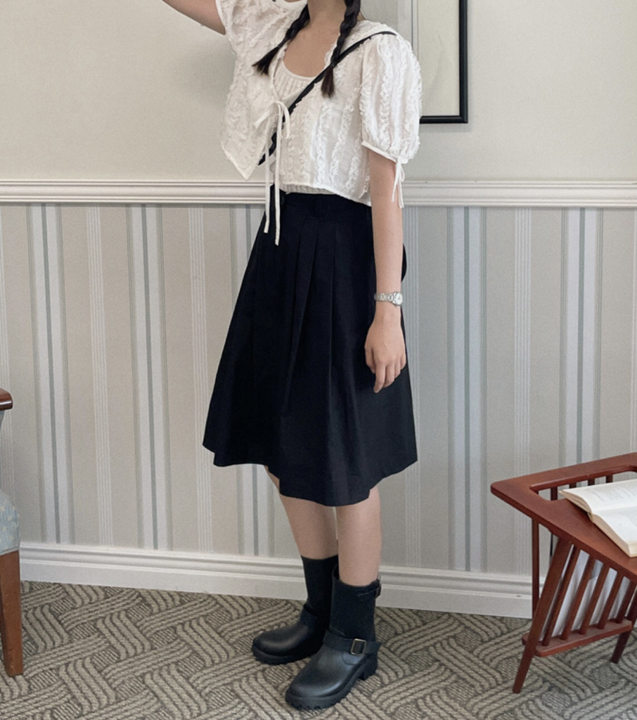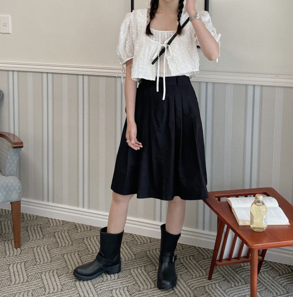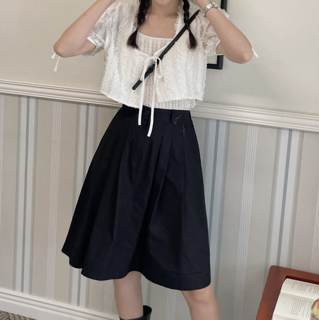 品名:코이 핀턱 미디 SK ◎※☞颜色:베이지, 블랙, 아이보리 ◎※☞尺寸:FREE ◎※☞材质:纯棉 100% 翻译