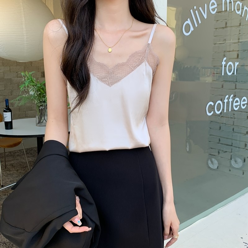 品名:레이스 새틴 나시 탑 ◎※☞颜色:바이올렛, 블랙, 샴페인, 완두콩, 화이트 ◎※☞尺寸:L, XL ◎※☞材质:聚氨酯 50%,聚酯 50% ◎※☞注意事项:只能干洗,只能手洗,不能手洗,机洗,不能使用漂白剂,不能烘干,不能熨烫,不能曲折