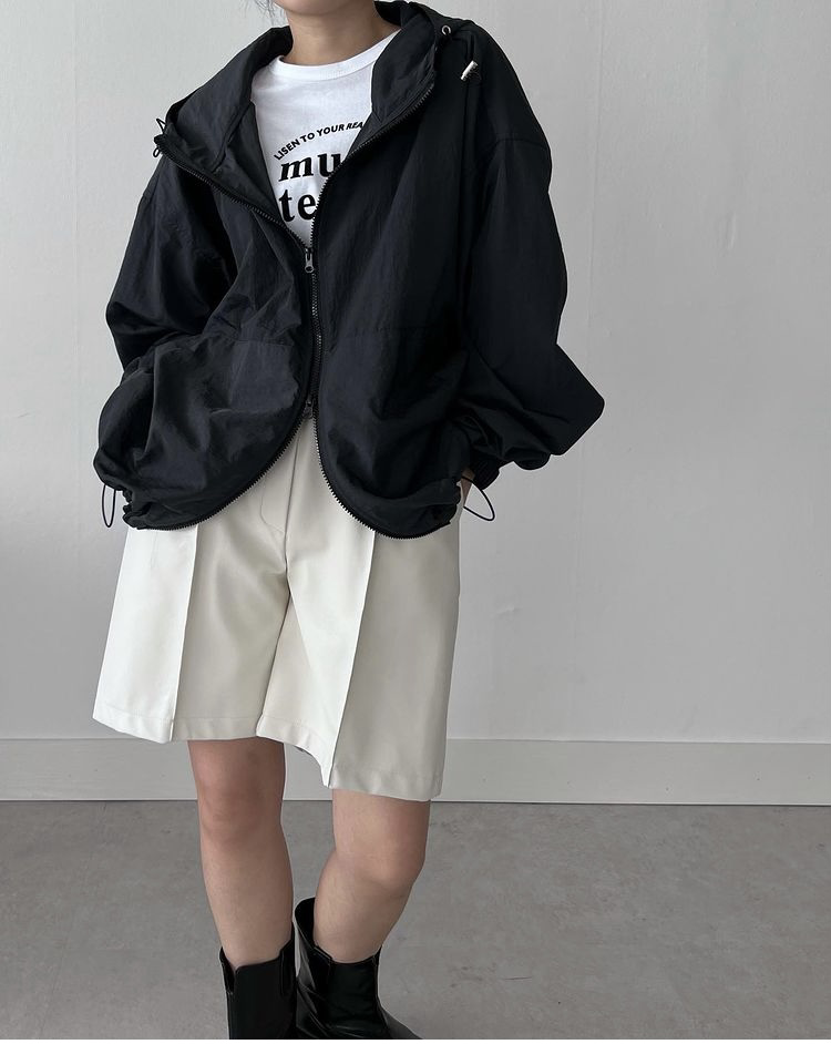 品名:简约休闲尼龙连帽外套 ◎※☞颜色:다크그레이, 블랙, 아이보리 ◎※☞尺寸:FREE ◎※☞材质:尼龙 100% 翻译