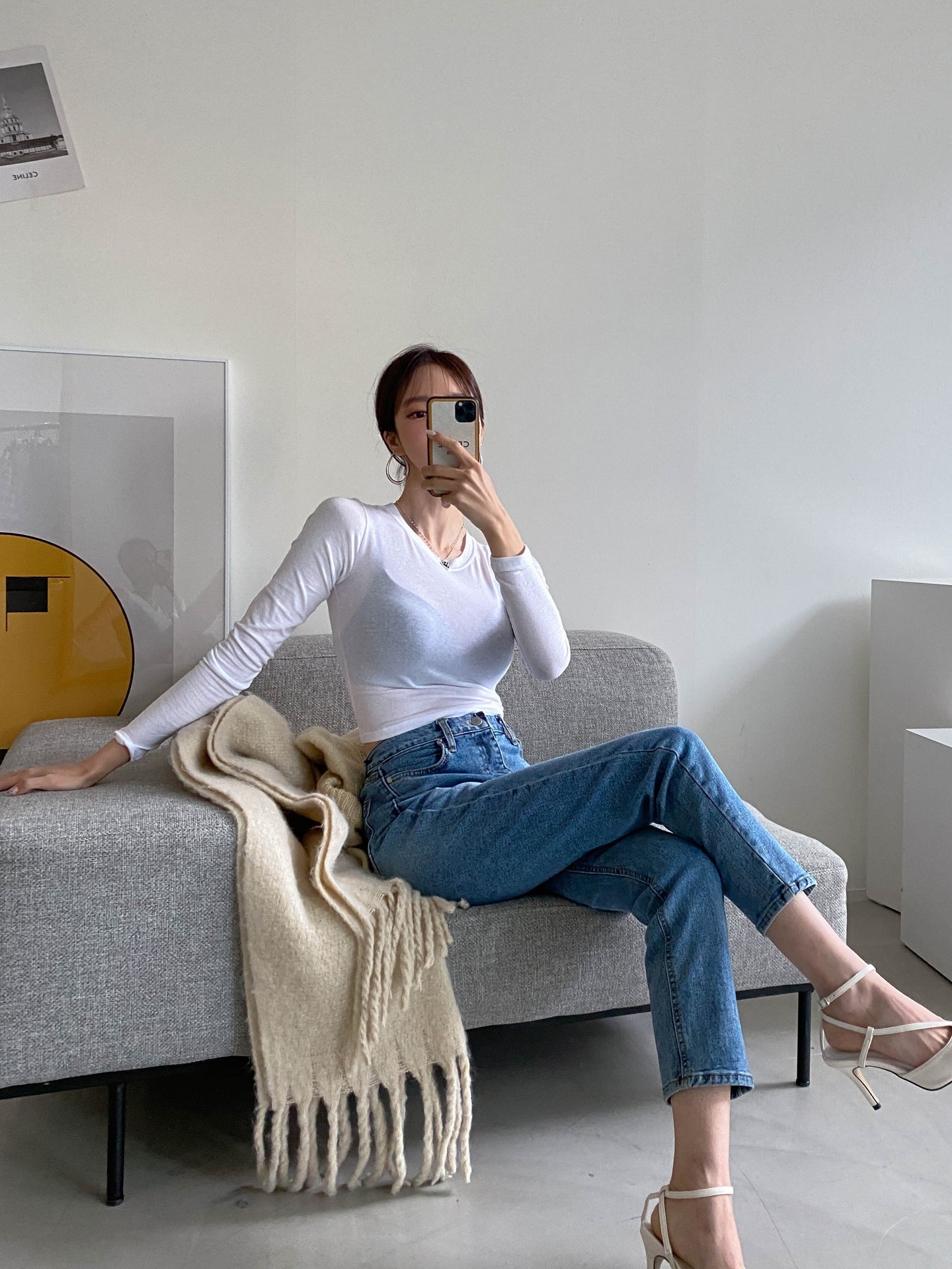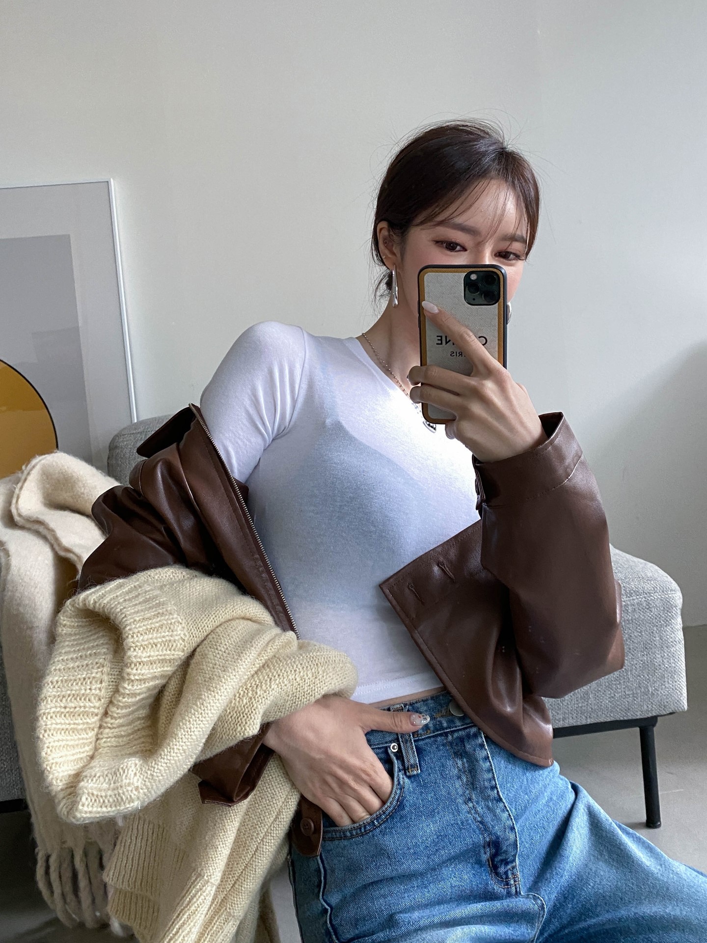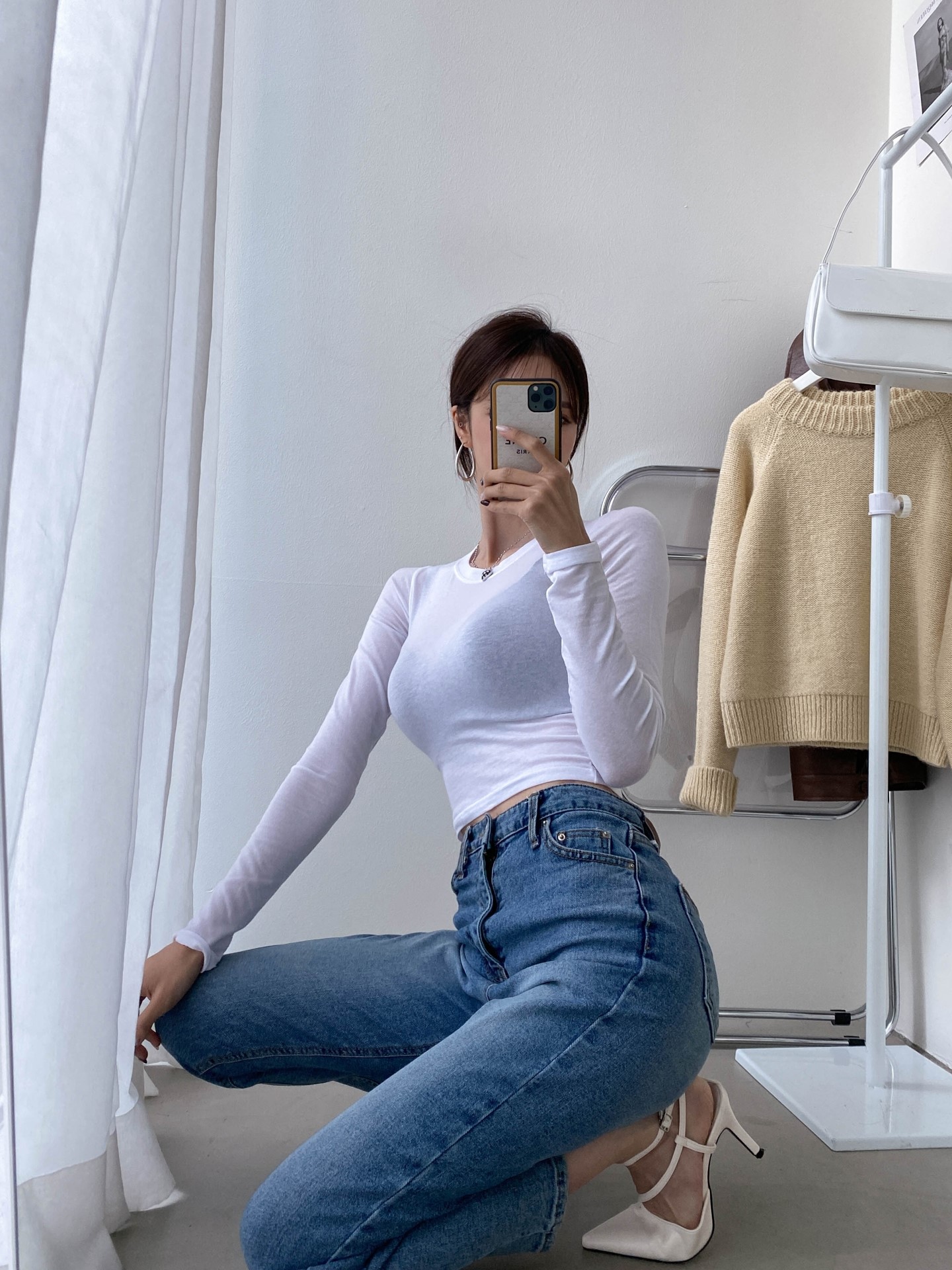 品名:말랑크롭긴팔 ◎※☞颜色:블랙, 소라, 아이보리, 핑크 ◎※☞尺寸:FREE ◎※☞材质:弹力 4%,纯棉 14%,天丝 82% 翻译