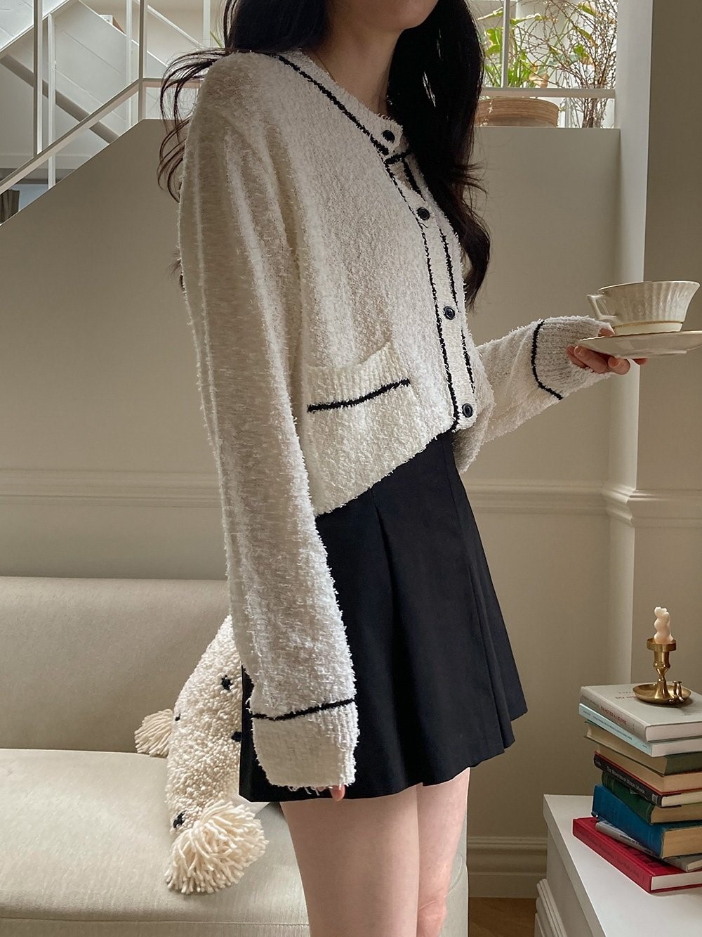 品名:꼬리사배색가디건 ◎※☞颜色:블랙, 아이 ◎※☞尺寸:FREE ◎※☞材质:腈纶 35%,纯棉 65% 翻译