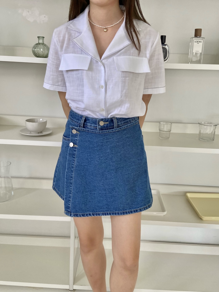 品名:323반바지 치마바지 랩스커트 ◎※☞颜色:연청, 진청 ◎※☞尺寸:L, M, S ◎※☞材质:纯棉 100% 翻译