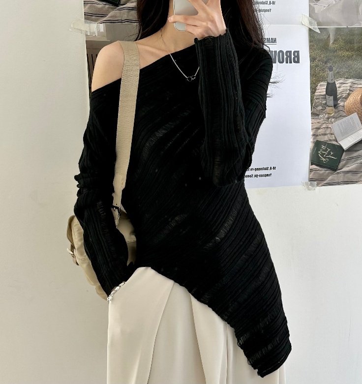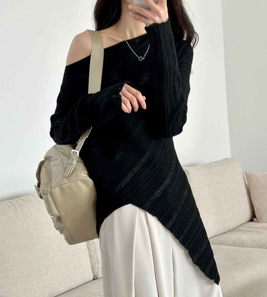 品名:허쉬니트 (허쉬KN,컬러니트,롱니트,언발니트,오프숄더니트,로맨틱,페미닌) ◎※☞颜色:블랙, 아이보리, 핑크 ◎※☞尺寸:FREE ◎※☞材质:羊毛 6%,尼龙 20%,聚酯 44%,스판 30% 翻译