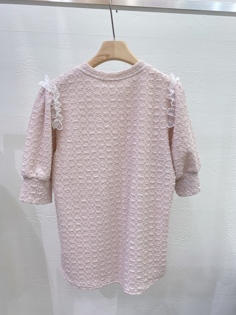 品名:23NEW 퍼프 레이스 반팔 티 ◎※☞颜色:블랙, 아이보리, 핑크 ◎※☞尺寸:FREE ◎※☞材质:聚酯 38%,人造纤维 34%,尼龙 28% 翻译