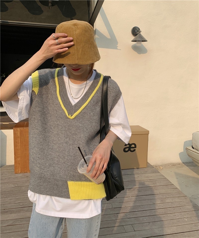 品名:그레이 옐로 니트 베스트 ◎※☞颜色:그레이, 옐로우 ◎※☞尺寸:FREE ◎※☞材质:腈纶 30%,聚酯 70% 翻译