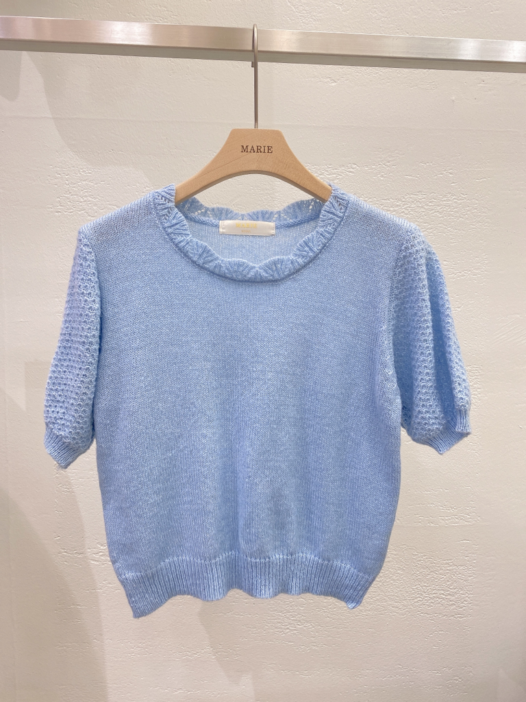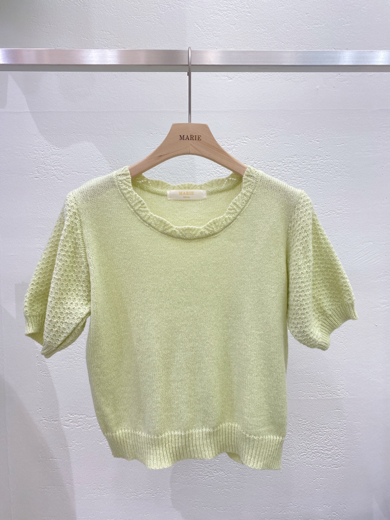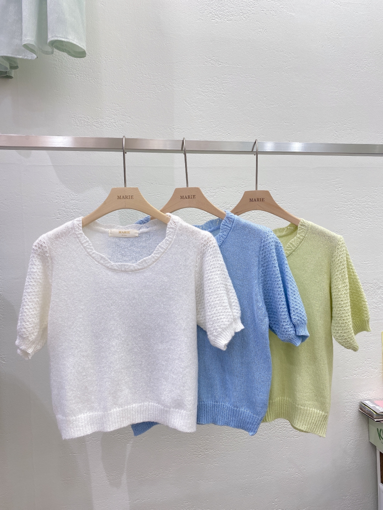 品名:23NEW 파스텔 반팔 니트 ◎※☞颜色:그린, 블루, 아이보리 ◎※☞尺寸:FREE ◎※☞材质:羊毛 5%,腈纶 57%,聚酯 38% 翻译