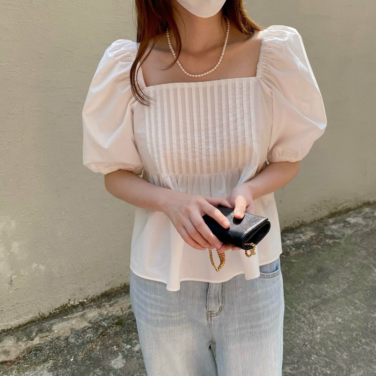品名:스파BL #퍼프블라우스 ◎※☞颜色:블랙, 아이보리 ◎※☞尺寸:FREE ◎※☞材质:纯棉 100% 翻译
