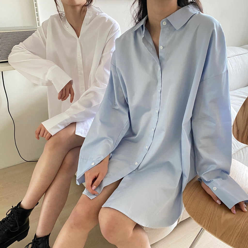 品名:보이셔츠ops(#기본#빅사이즈) ◎※☞颜色:소라, 아이보리 ◎※☞尺寸:FREE ◎※☞材质:纯棉 100% 翻译