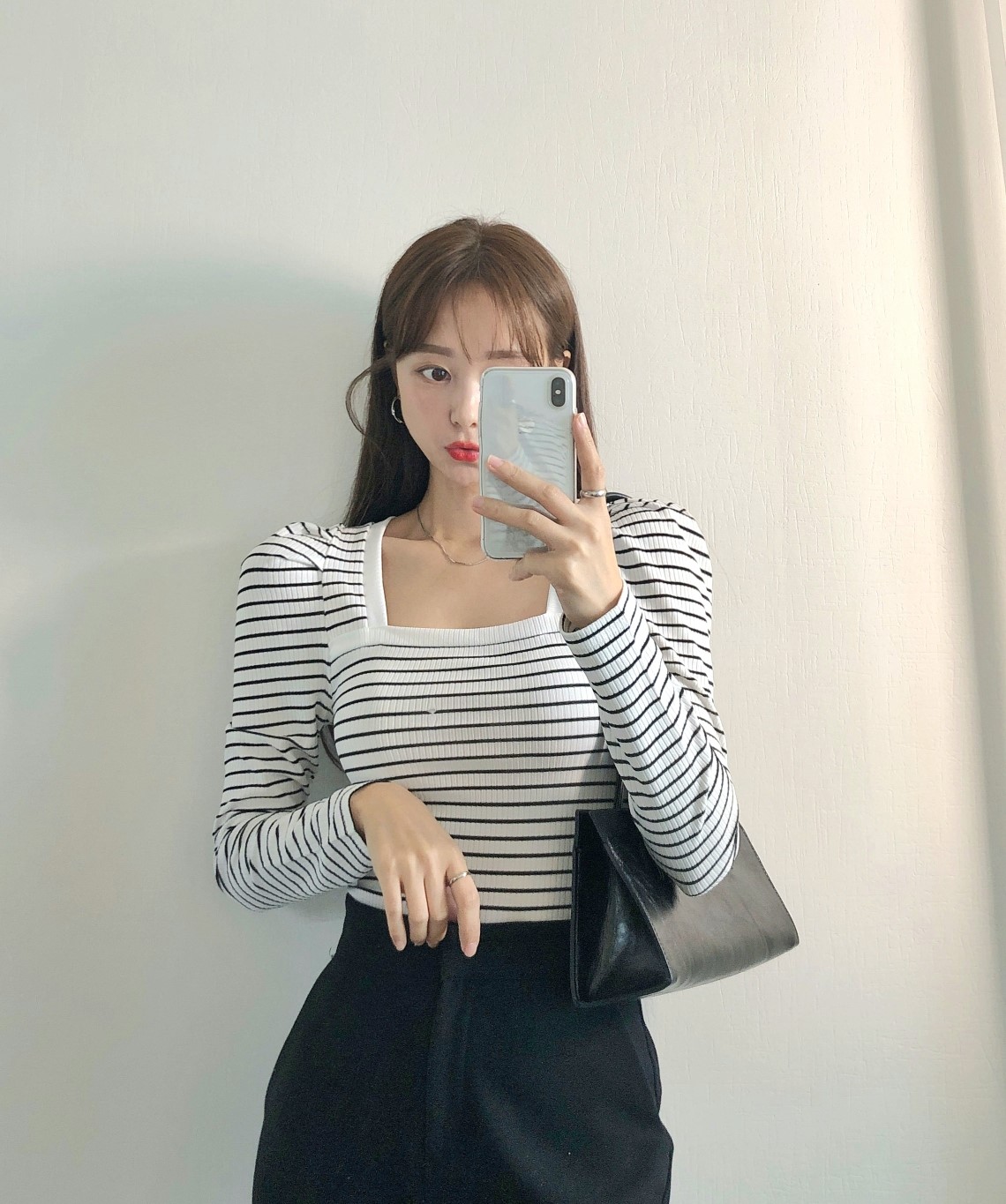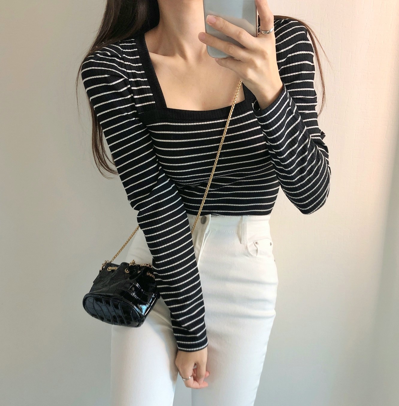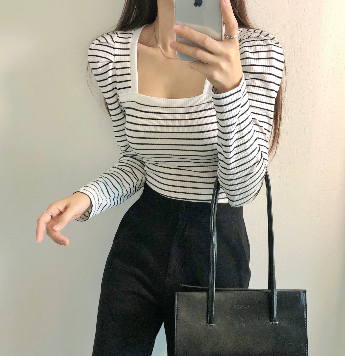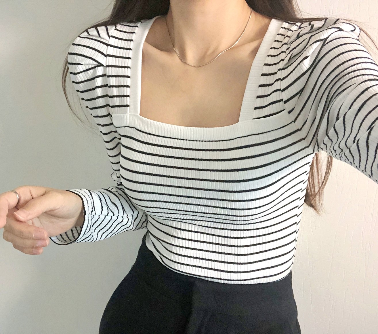 品名:단가라퍼프긴팔 ◎※☞颜色:블랙, 아이보리 ◎※☞尺寸:FREE ◎※☞材质:스판 5%,聚酯 80%,人造纤维 15% 翻译