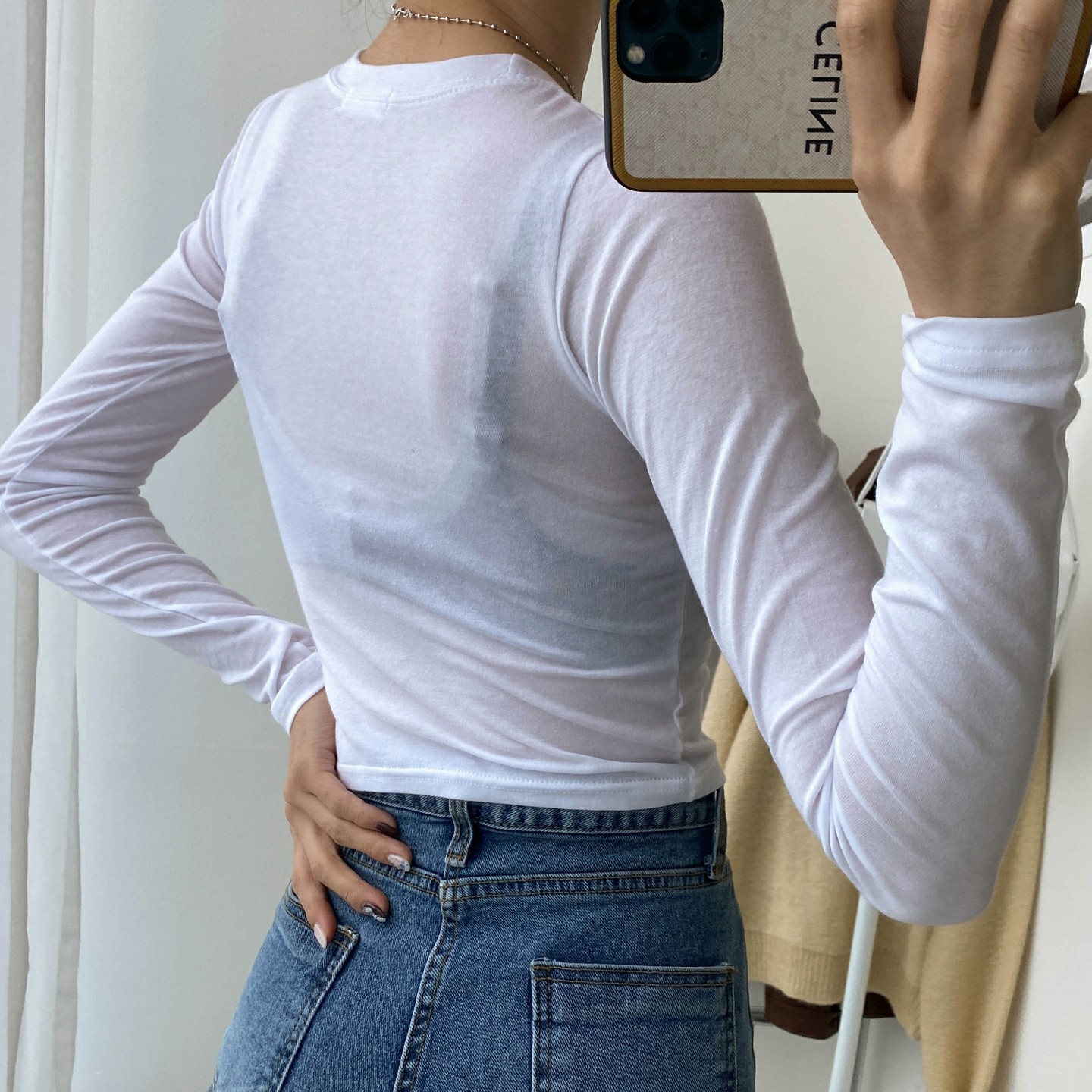 品名:말랑크롭긴팔 ◎※☞颜色:블랙, 소라, 아이보리, 핑크 ◎※☞尺寸:FREE ◎※☞材质:弹力 4%,纯棉 14%,天丝 82% 翻译