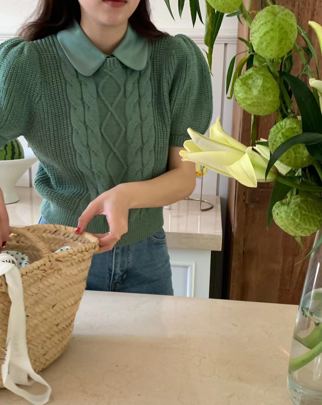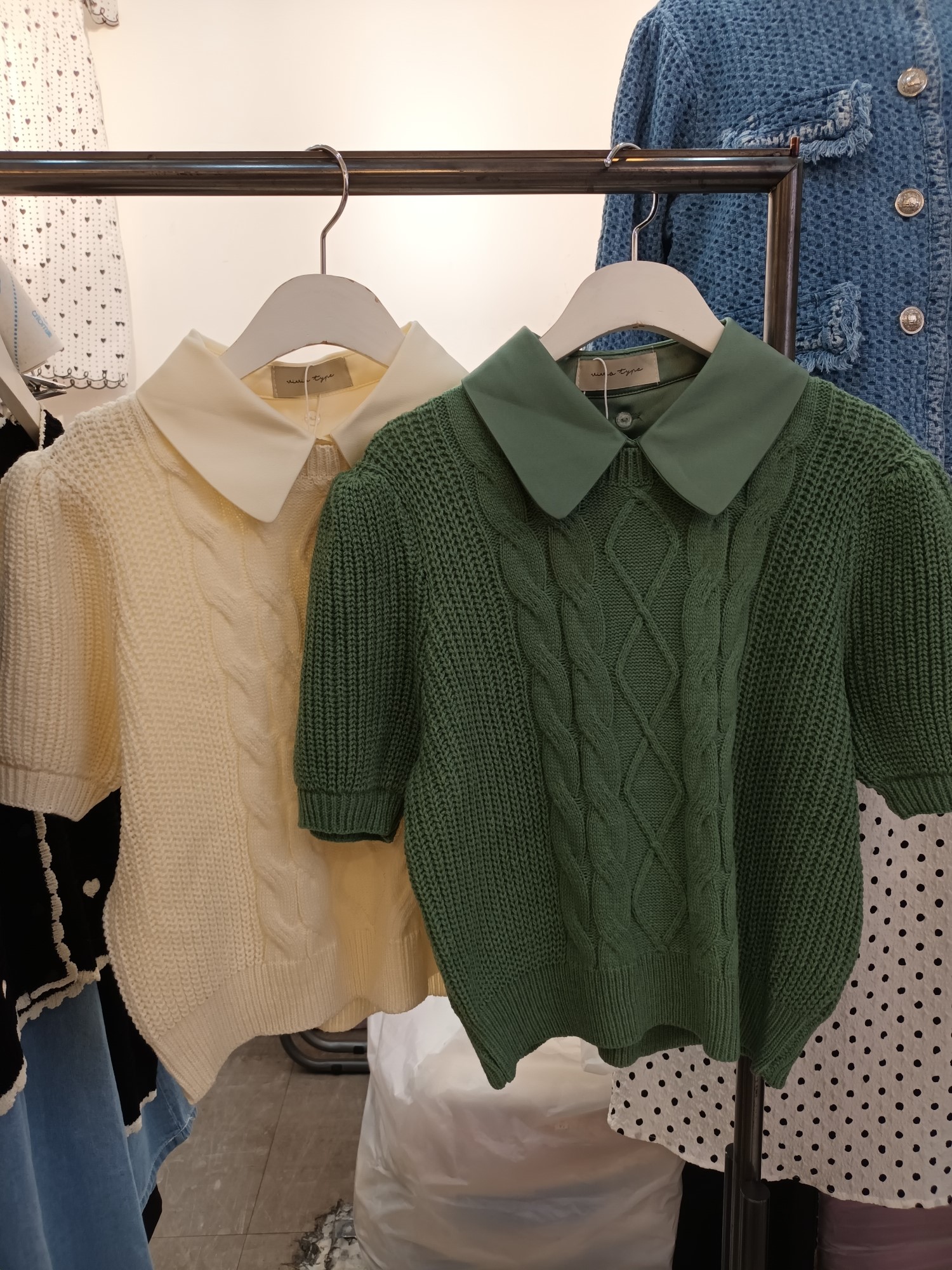 品名:카라 반팔니트 ◎※☞颜色:그린, 아이보리, 옐로우, 핑크 ◎※☞尺寸:FREE ◎※☞材质:腈纶 50%,尼龙 50% ◎※☞注意事项:只能干洗,只能手洗,不能手洗,机洗,不能使用漂白剂,不能烘干,不能熨烫,不能曲折