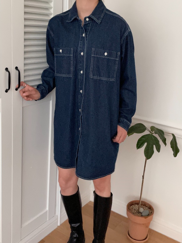 品名:포켓데님원피스 ◎※☞颜色:진청, 흑청 ◎※☞尺寸:FREE ◎※☞材质:纯棉 100% 翻译