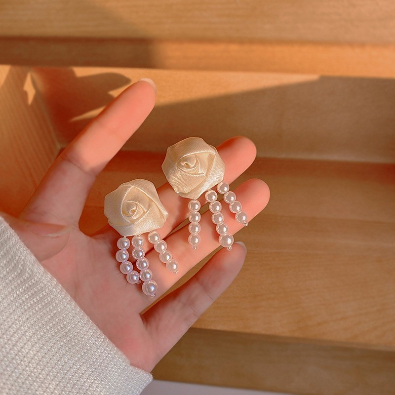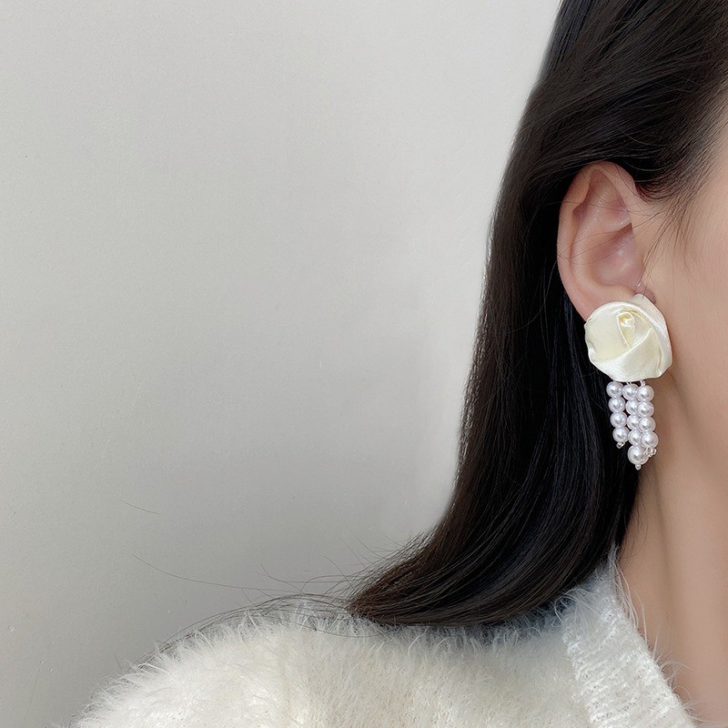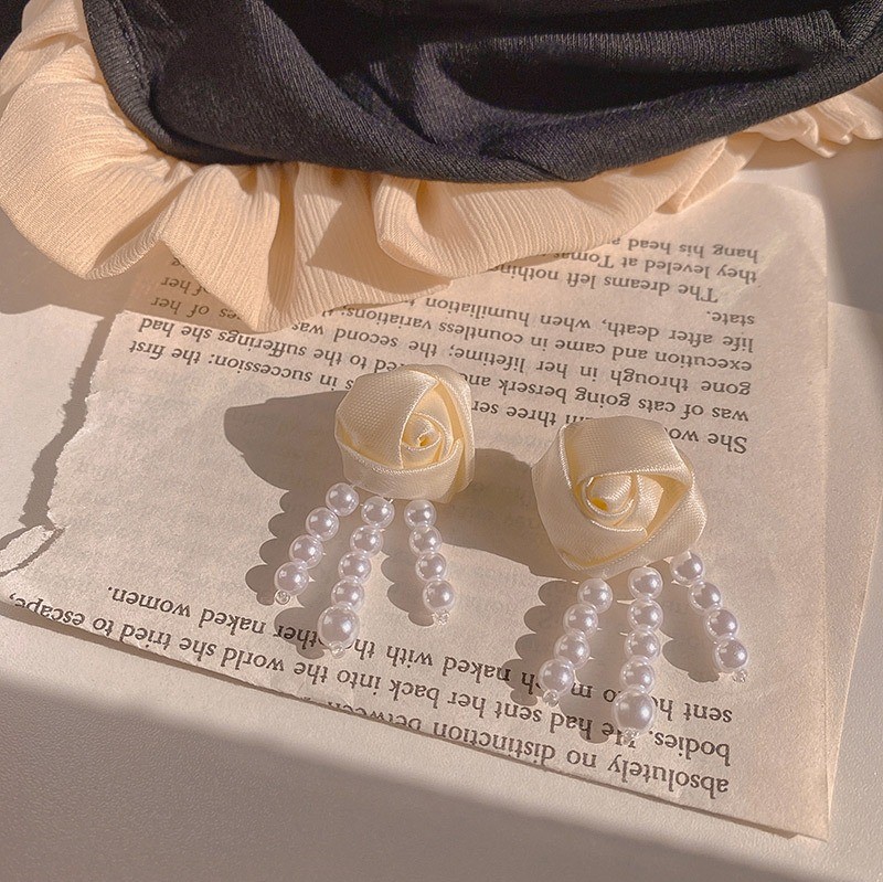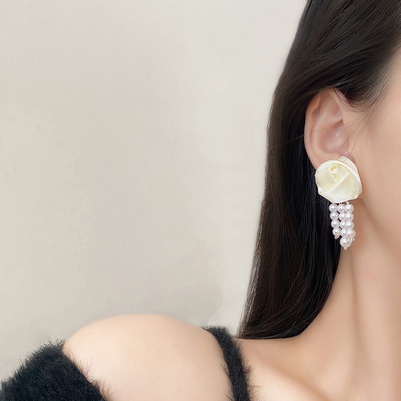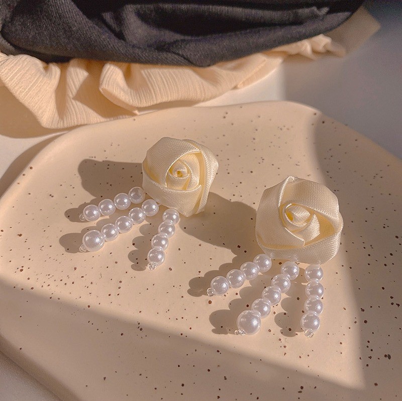 品名:E2375 장미리본귀걸이 ◎※☞颜色:화이트 ◎※☞尺寸:4.7CM×2.2CM ◎※☞材质:镀金 100% 翻译