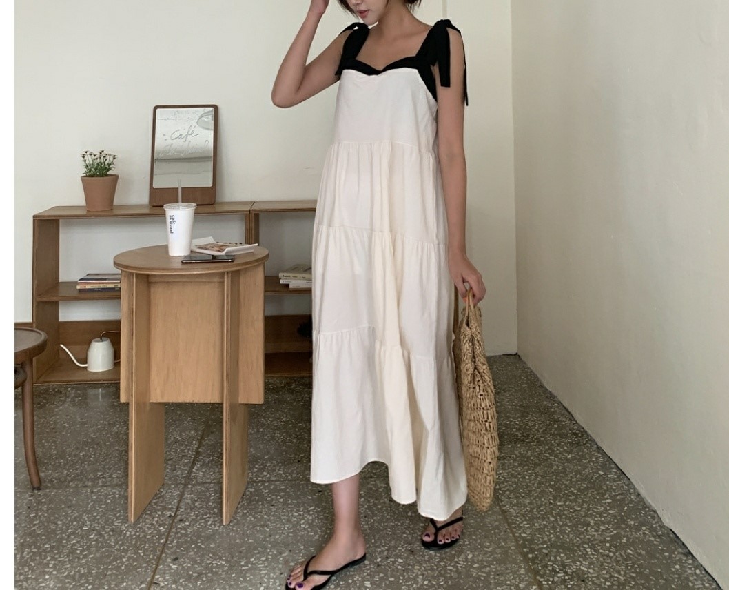 品名:997배색끈원피스 ◎※☞颜色:그린, 아이보리 ◎※☞尺寸:FREE ◎※☞材质:纯棉 100% 翻译
