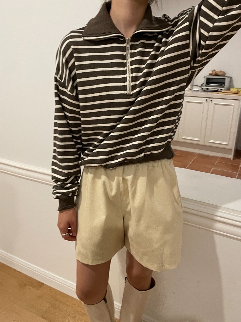 品名:단가라집업맨투맨 ◎※☞颜色:네이비, 메란지, 브라운, 아이 ◎※☞尺寸:FREE ◎※☞材质:纯棉 100% 翻译