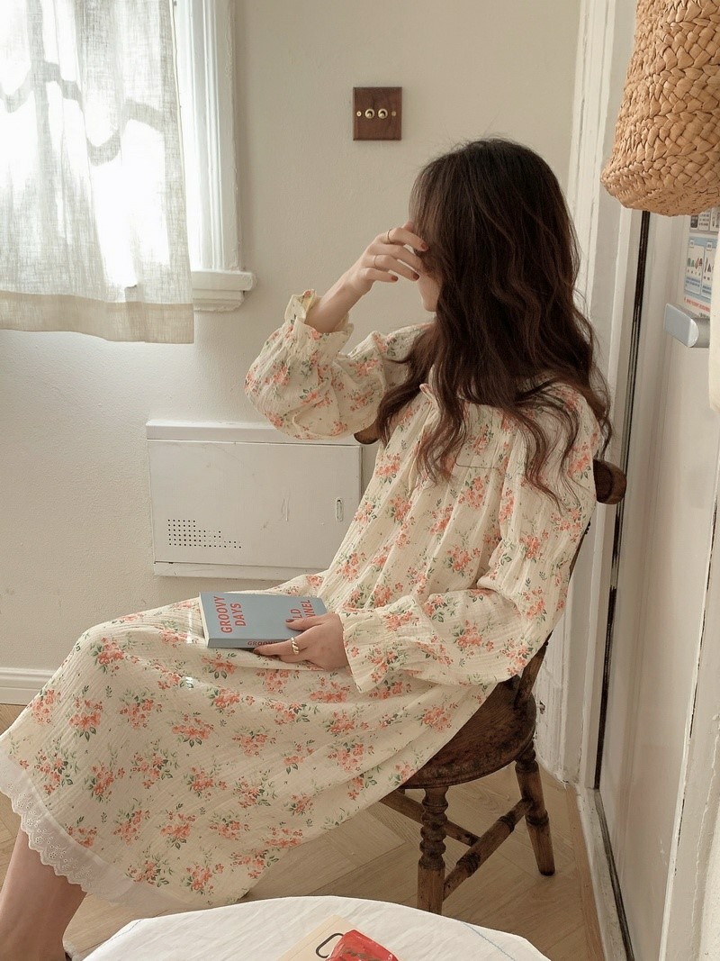 品名:빛나잠옷원피스(파자마 홈웨어) ◎※☞颜色:아이보리 ◎※☞尺寸:FREE ◎※☞材质:纯棉 100% 翻译