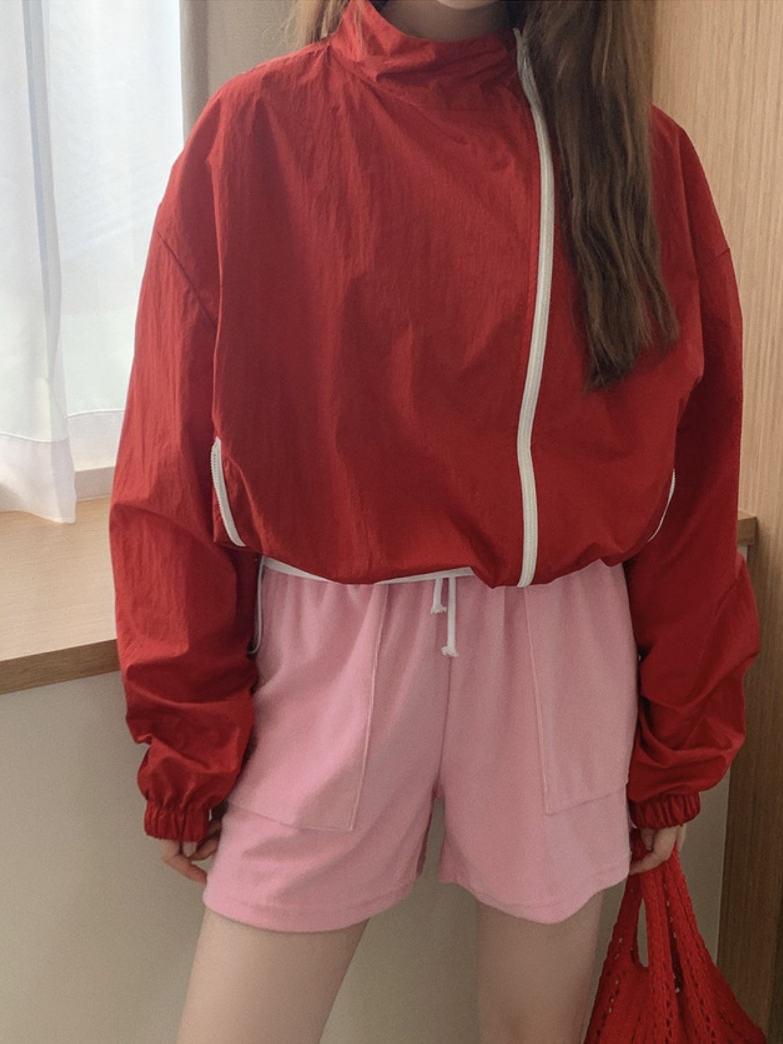 品名:윈드점퍼 바람막이 윈드브레이커 ◎※☞颜色:다크그레이, 레드 ◎※☞尺寸:FREE ◎※☞材质:尼龙 100% 翻译