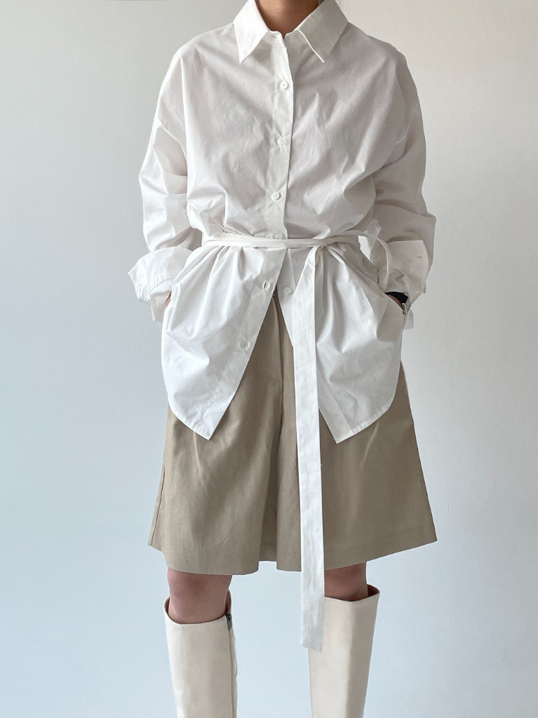 品名:벨트와이드셔츠 ◎※☞颜色:검정, 베이지, 소라, 아이 ◎※☞尺寸:FREE ◎※☞材质:면 100% 翻译