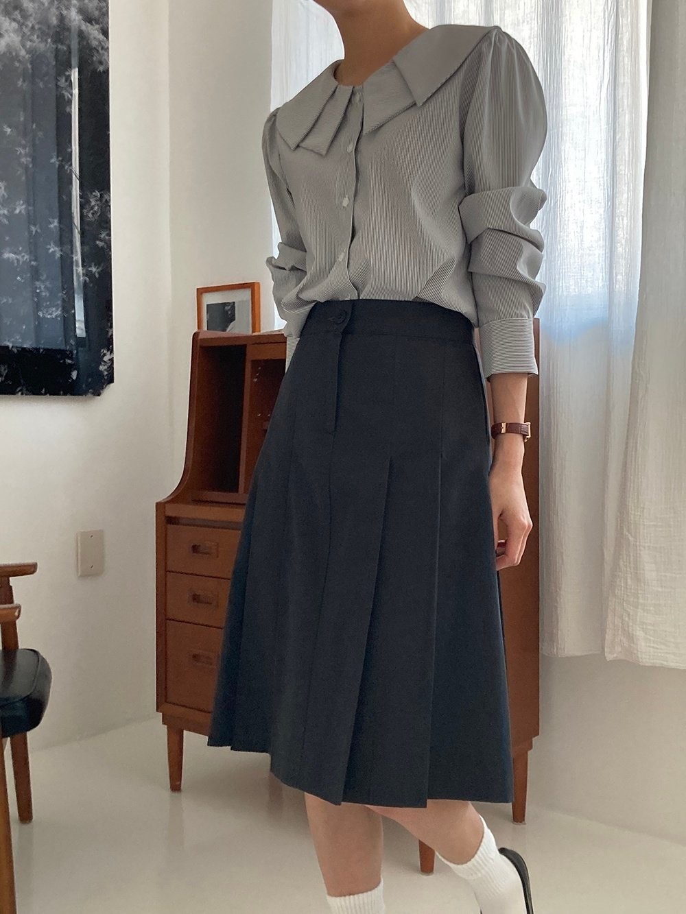 品名:핀턱미디스커트 ◎※☞颜色:블랙, 연베이지 ◎※☞尺寸:FREE ◎※☞材质:纯棉 100% ◎※☞注意事项:只能干洗,只能手洗,不能手洗,机洗,不能使用漂白剂,不能烘干,不能熨烫,不能曲折 翻译