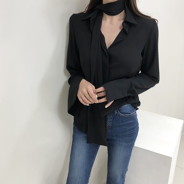 品名:끌로에st. 스카프 블라우스 ◎※☞颜色:네이비, 베이지, 블랙, 피치, 화이트 ◎※☞尺寸:FREE ◎※☞材质:聚酯 100% 翻译