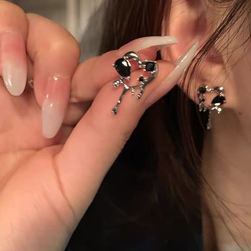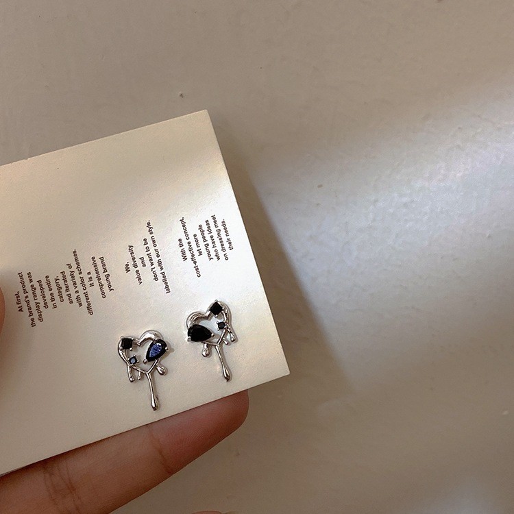 品名:E2394 블랙지르콘하트귀걸이 ◎※☞颜色:실버 ◎※☞尺寸:F ◎※☞材质:镀金 100% 翻译