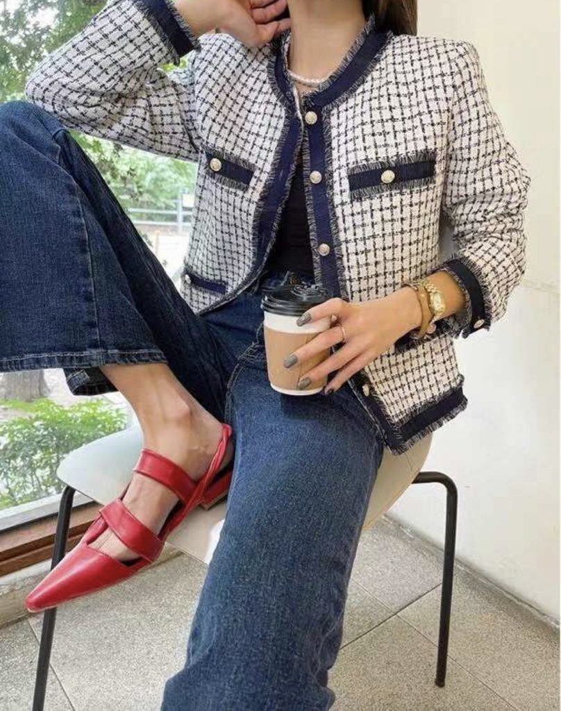 品名:9655 첵첵 샤넬 트위드 쟈켓 ◎※☞颜色:레드, 블루 ◎※☞尺寸:FREE ◎※☞材质:纯棉 100% 翻译