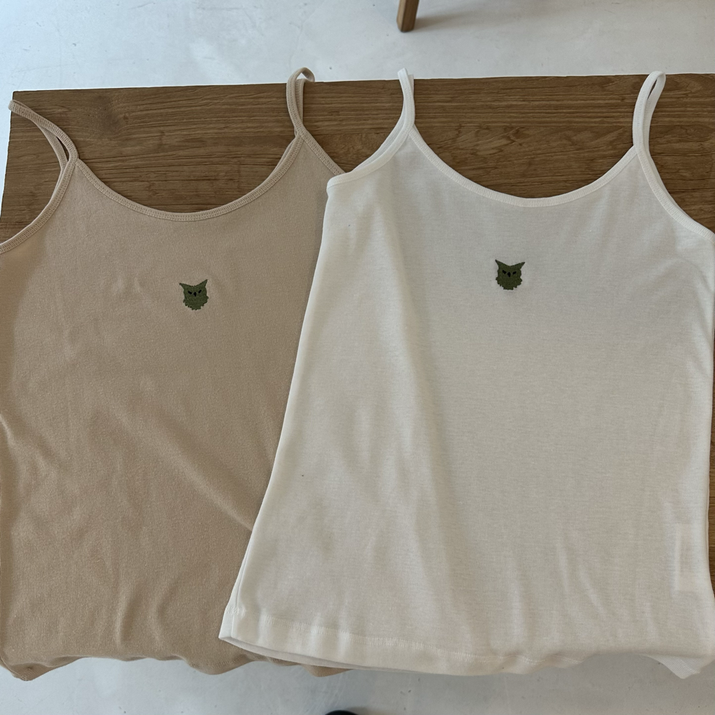 品名:부엉이 자수 나시 기본 ◎※☞颜色:검정, 그린, 노랑, 베이지, 아이, 오렌지, 체리핑크, 파랑 ◎※☞尺寸:FREE ◎※☞材质:纯棉 100% ◎※☞注意事项:只能干洗,只能手洗,不能手洗,机洗,不能使用漂白剂,不能烘干,不能熨烫,不能曲折