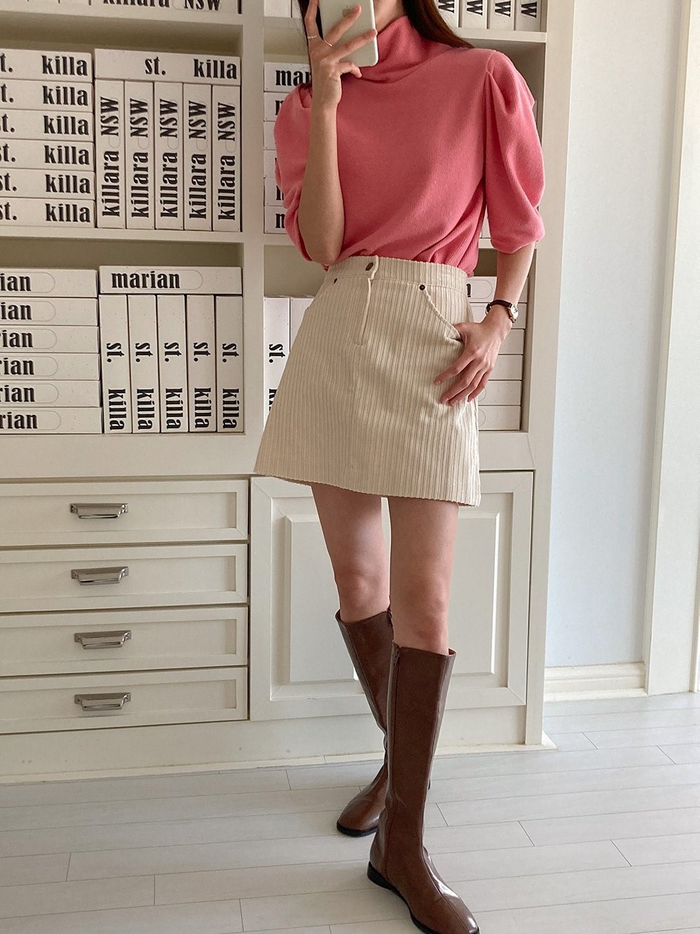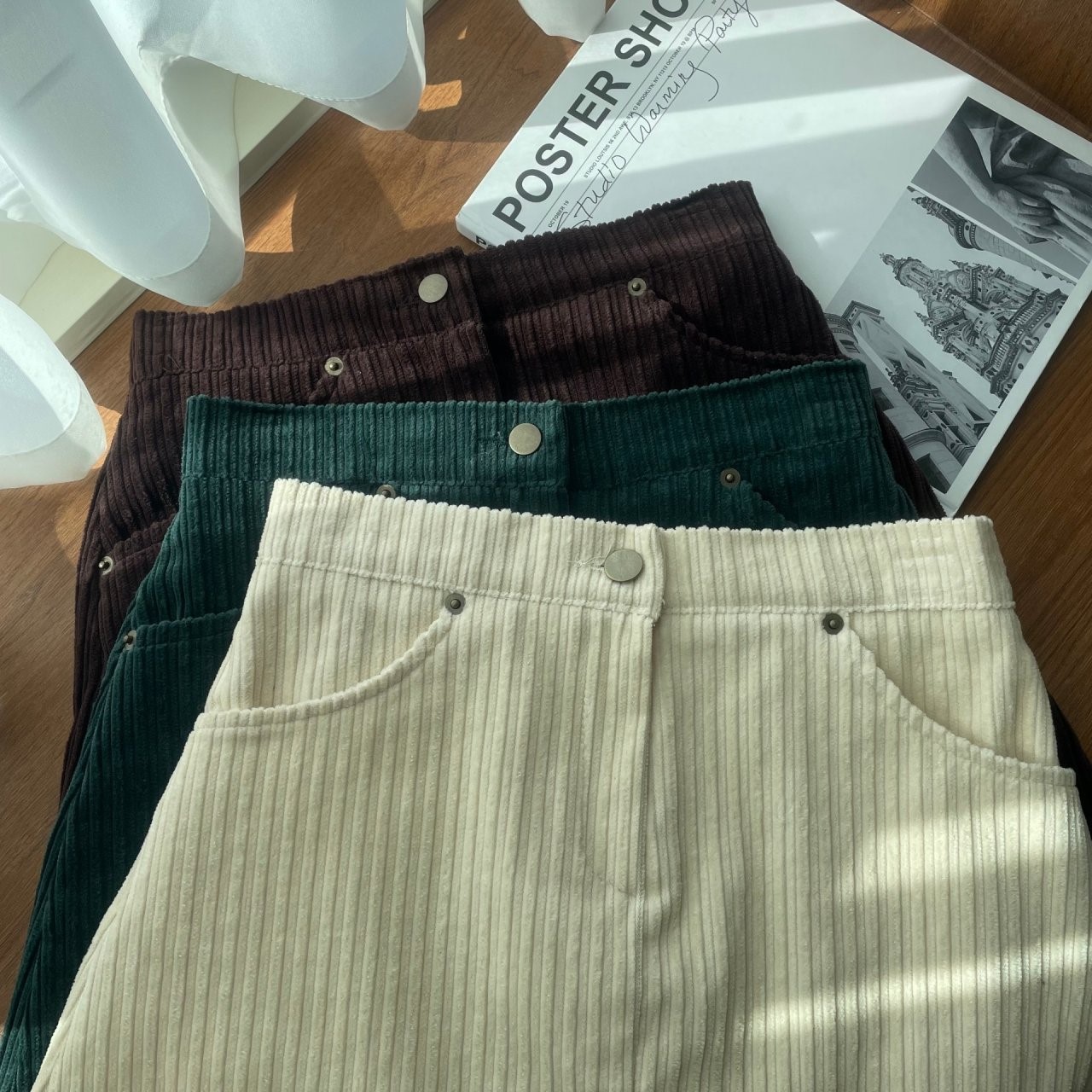 品名:골덴미니스커트 ◎※☞颜色:그린, 브라운, 크림 ◎※☞尺寸:FREE ◎※☞材质:纯棉 100% 翻译
