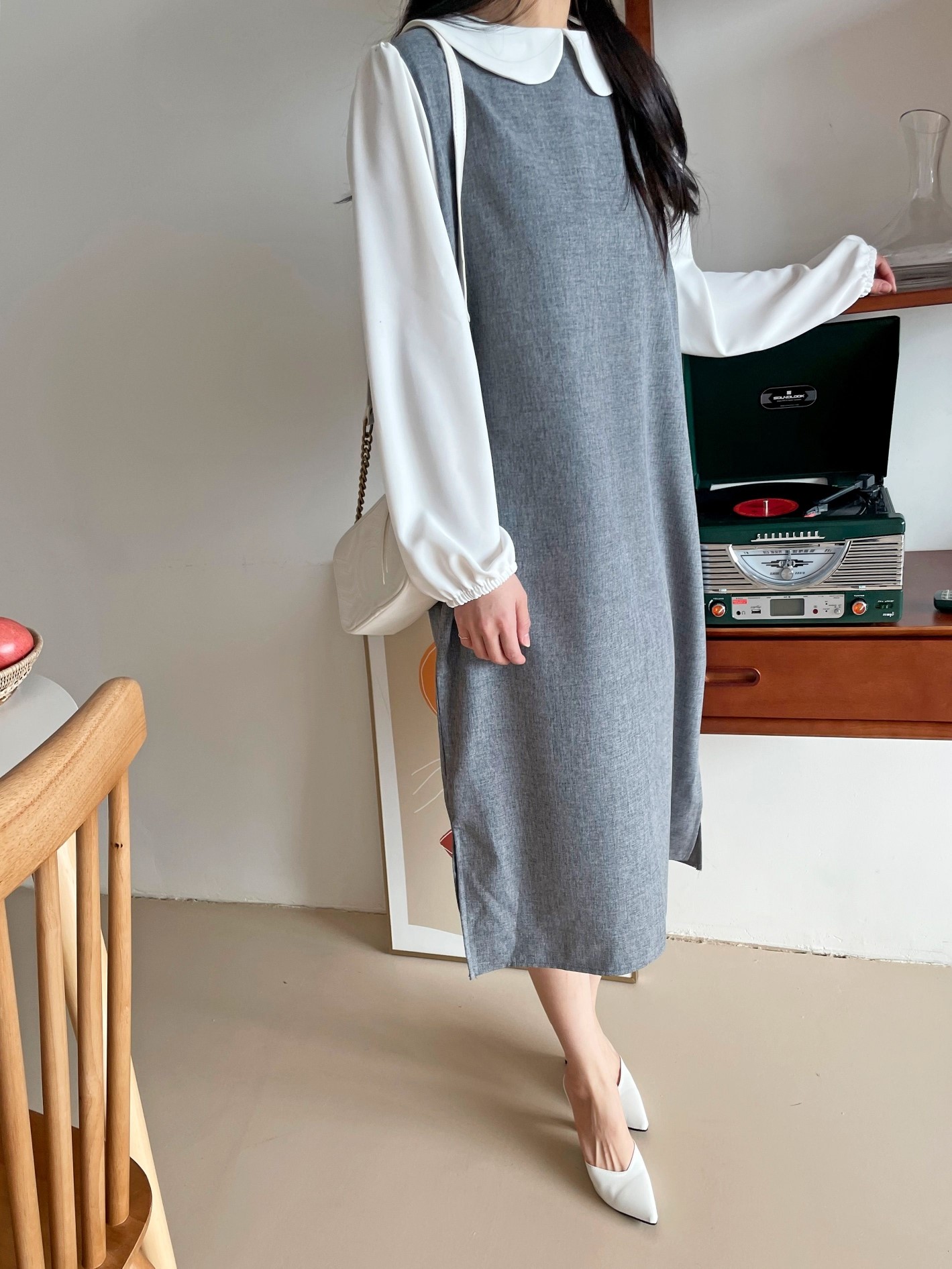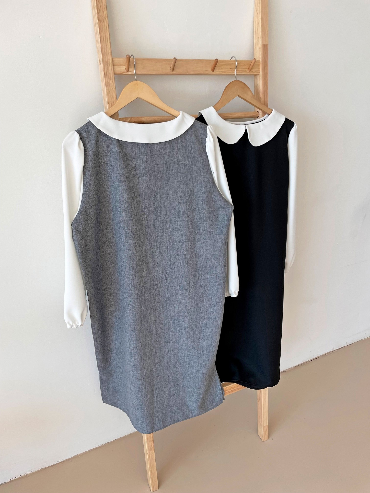 品名:淑女宽松雪纺袖拼接连衣裙 ◎※☞颜色:그레이, 블랙 ◎※☞尺寸:FREE ◎※☞材质:聚酯 100% ◎※☞注意事项:只能干洗,只能手洗,不能手洗,机洗,不能使用漂白剂,不能烘干,不能熨烫,不能曲折 翻译