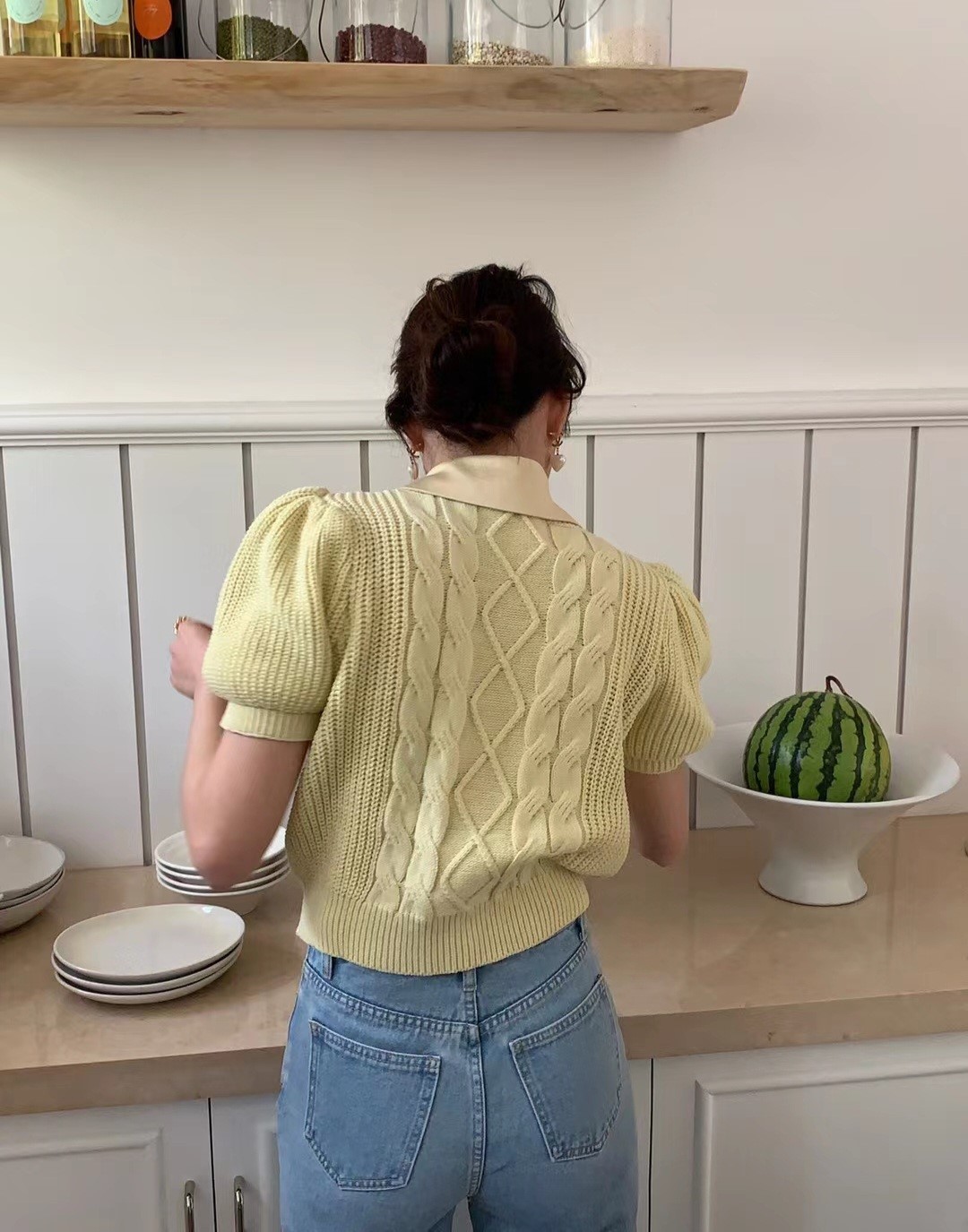 品名:카라 반팔니트 ◎※☞颜色:그린, 아이보리, 옐로우, 핑크 ◎※☞尺寸:FREE ◎※☞材质:腈纶 50%,尼龙 50% ◎※☞注意事项:只能干洗,只能手洗,不能手洗,机洗,不能使用漂白剂,不能烘干,不能熨烫,不能曲折