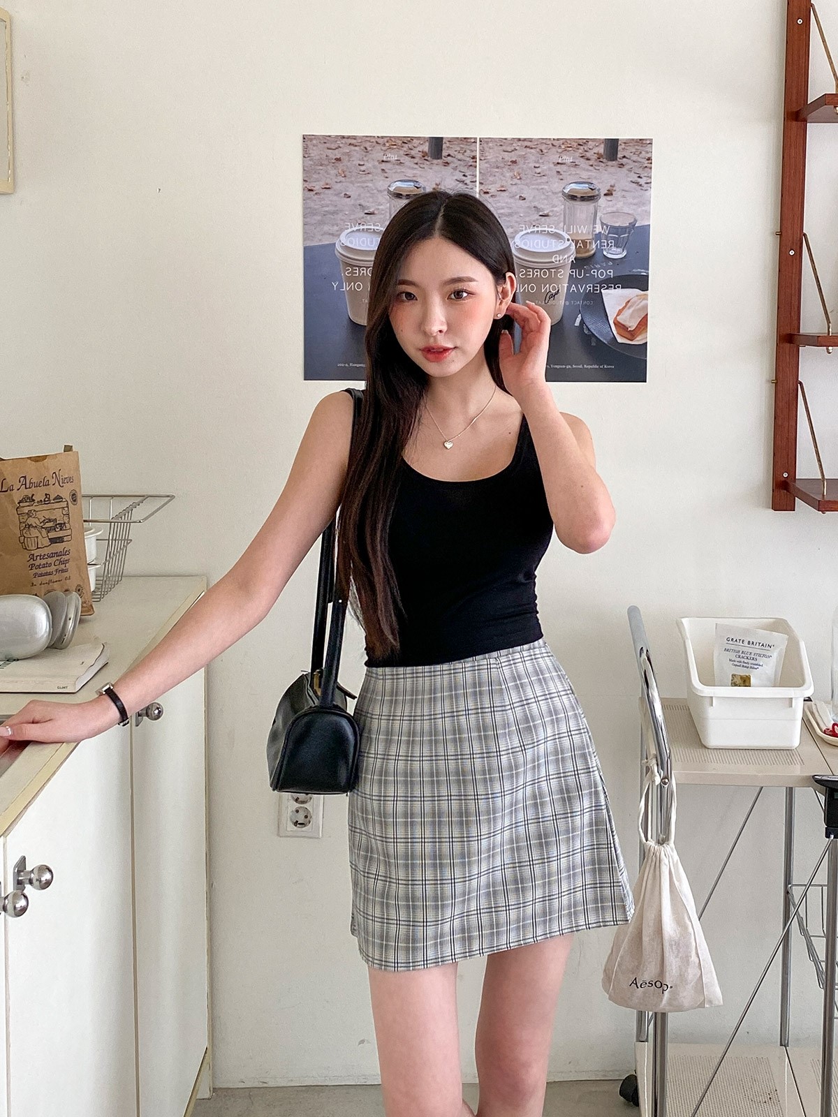 品名:아이브Sk ◎※☞颜色:베이지, 블랙 ◎※☞尺寸:FREE ◎※☞材质:스판 5%,聚酯 95% ◎※☞注意事项:只能干洗,只能手洗,不能手洗,机洗,不能使用漂白剂,不能烘干,不能熨烫,不能曲折 翻译