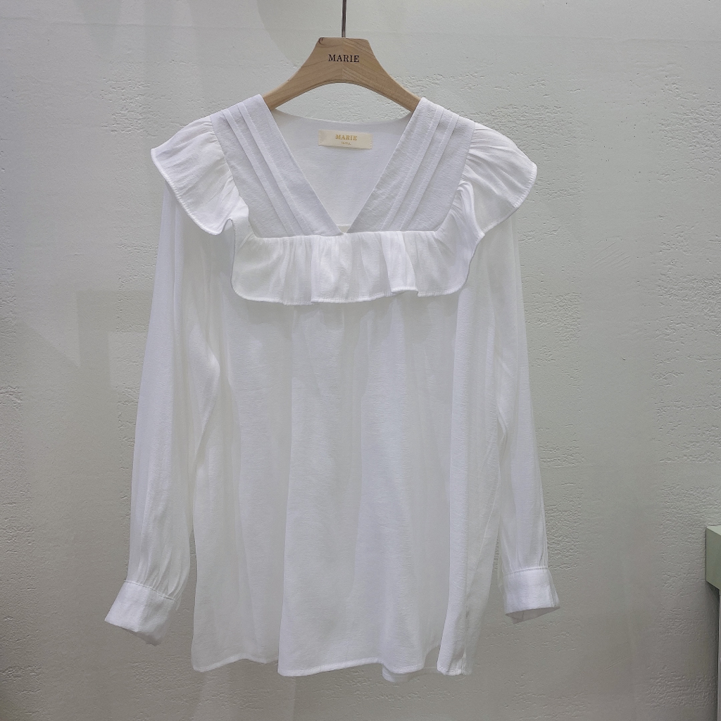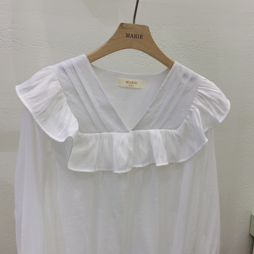 品名:23 NEW 브이넥 프릴 블라우스 ◎※☞颜色:베이지, 화이트 ◎※☞尺寸:FREE ◎※☞材质:聚酯 100% 翻译