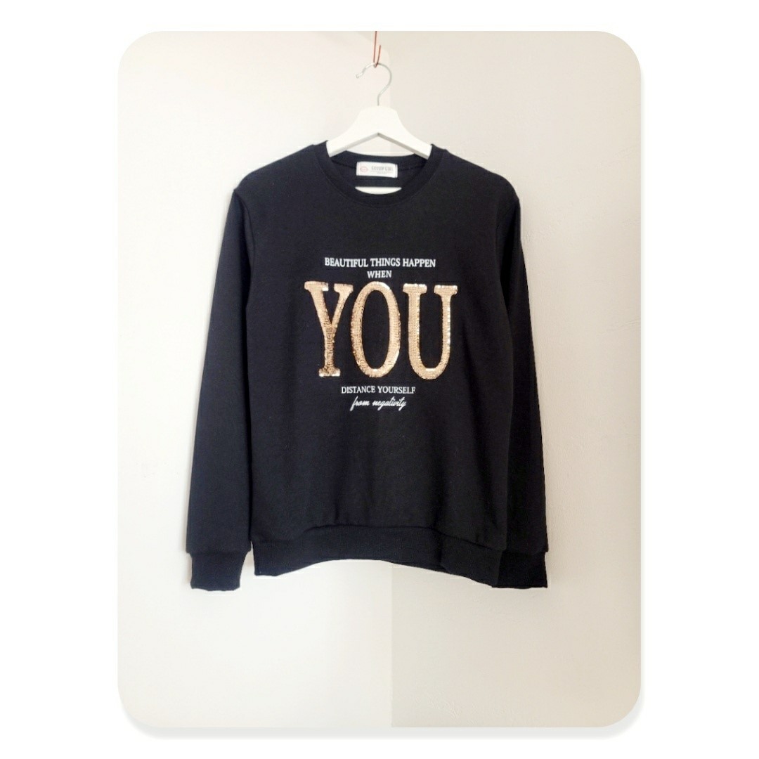 品名:YOU맨투맨 ◎※☞颜色:그레이, 블랙, 아이보리 ◎※☞尺寸:FREE ◎※☞材质:纯棉 60%,聚酯 40% 翻译