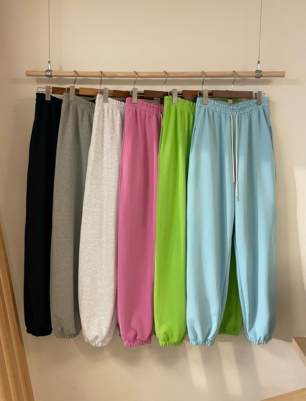品名:위켄드 쭈리조거 ◎※☞颜色:멜란그레이, 백그레이, 블랙, 소라, 연두, 핑크 ◎※☞尺寸:FREE ◎※☞材质:纯棉 100% 翻译
