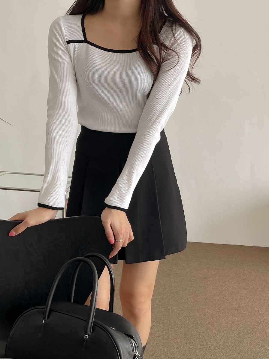 品名:요미배색T #스퀘어넥 #긴팔티 #봄 ◎※☞颜色:그레이, 네이비, 브라운, 아이보리 ◎※☞尺寸:FREE ◎※☞材质:纯棉 100% 翻译