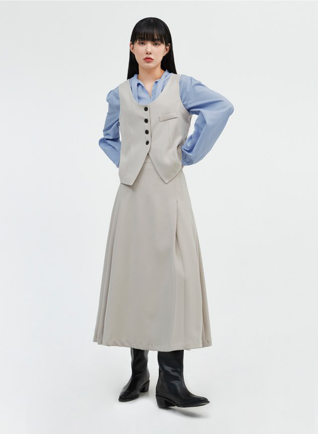 品名:纯色高级褶皱长款西装裙 ◎※☞颜色:다크그레이, 베이지, 블랙 ◎※☞尺寸:FREE ◎※☞材质:聚酯 95%,弹力 5% ◎※☞注意事项:只能干洗,只能手洗,不能手洗,机洗,不能使用漂白剂,不能烘干,不能熨烫,不能曲折