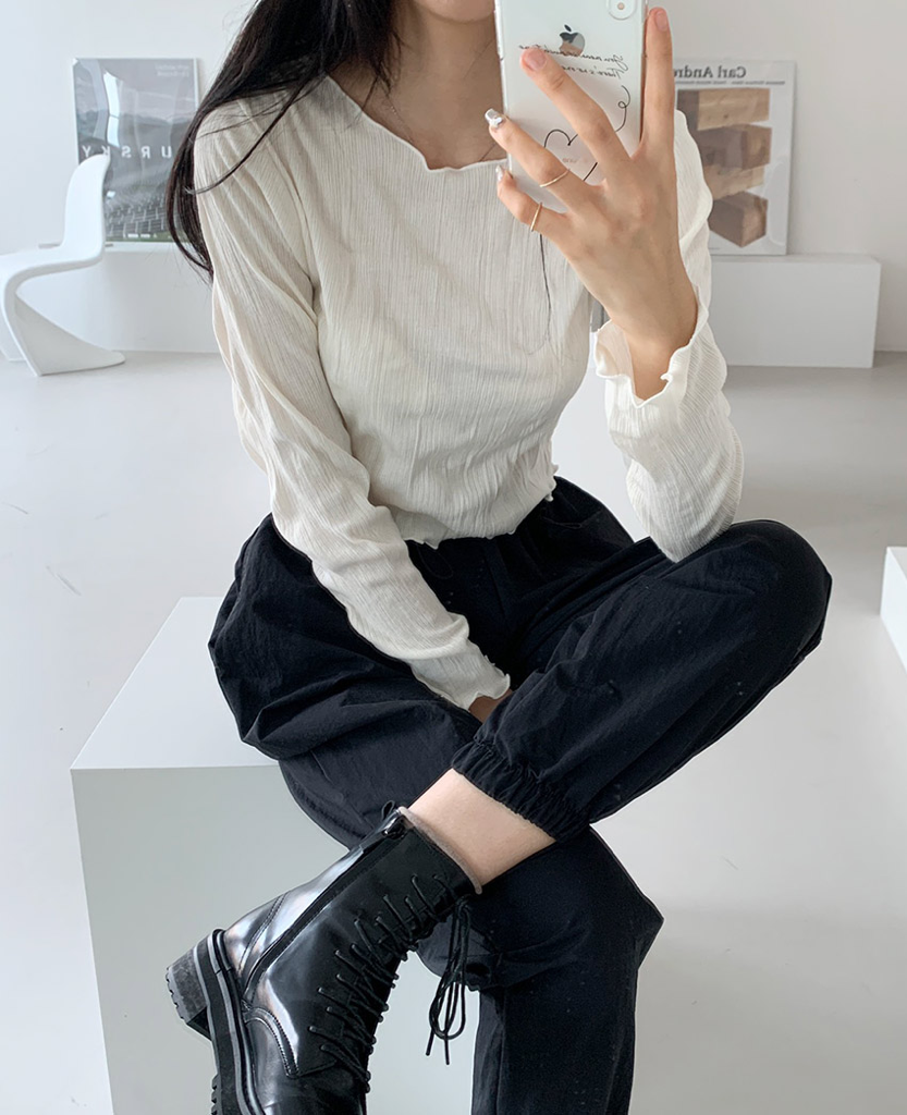 品名:신상)립링클t ◎※☞颜色:블랙, 화이트 ◎※☞尺寸:FREE ◎※☞材质:纯棉 95%,弹力 5% 翻译
